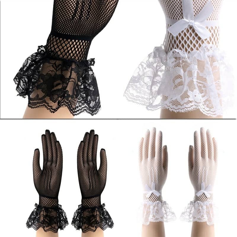 Mua tại TiktokGăng tay Cô dâu và Dạ hội. MS: 39221. Chất liệu: ren chun co giãn, độ đàn hồi cao, rất ôm tay. Kiểu dáng: ren mắt cáo, tạo kiểu, cổ tay đính ren và nơ ruy băng. Màu sắc: đen.