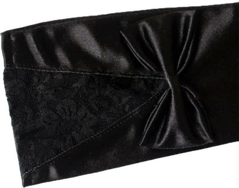 Găng tay Cô dâu và Dạ hội MS: 40546 Chất liệu: phi bóng phối ren và nơ Kiểu dáng: kín ngón, dài ống tay. Màu sắc: đen