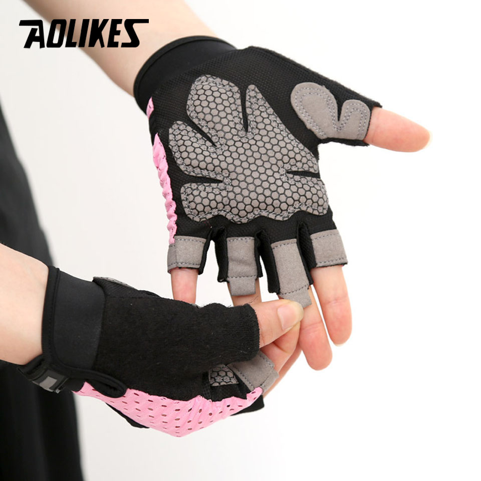 AOLIKES 113 - 1 đôi -Găng tay tập gym hở lưng có đệm lòng bàn tay chống trượt chuyên gym-chính hãng