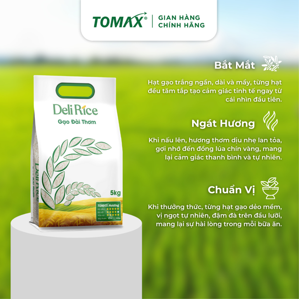 COMBO 2 TÚI 5KG GẠO ĐÀI THƠM DELI RICE - TƠI XỐP, DẺO THƠM, THƠM DỊU - TOMAX Gạo hữu cơ Đài Thơm Deli Rice 100% không có chất bảo quản, không có chất chống