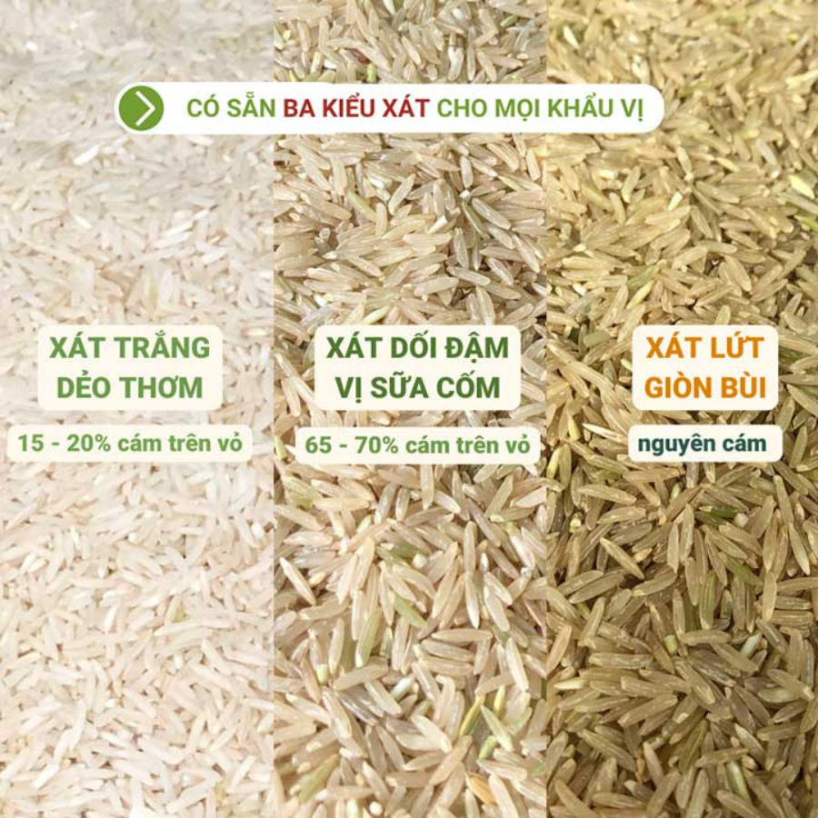 • Gạo xát giữ lại vỏ cám, không trà bóng, chứa hàm lượng dinh dưỡng cao cho sức khỏe