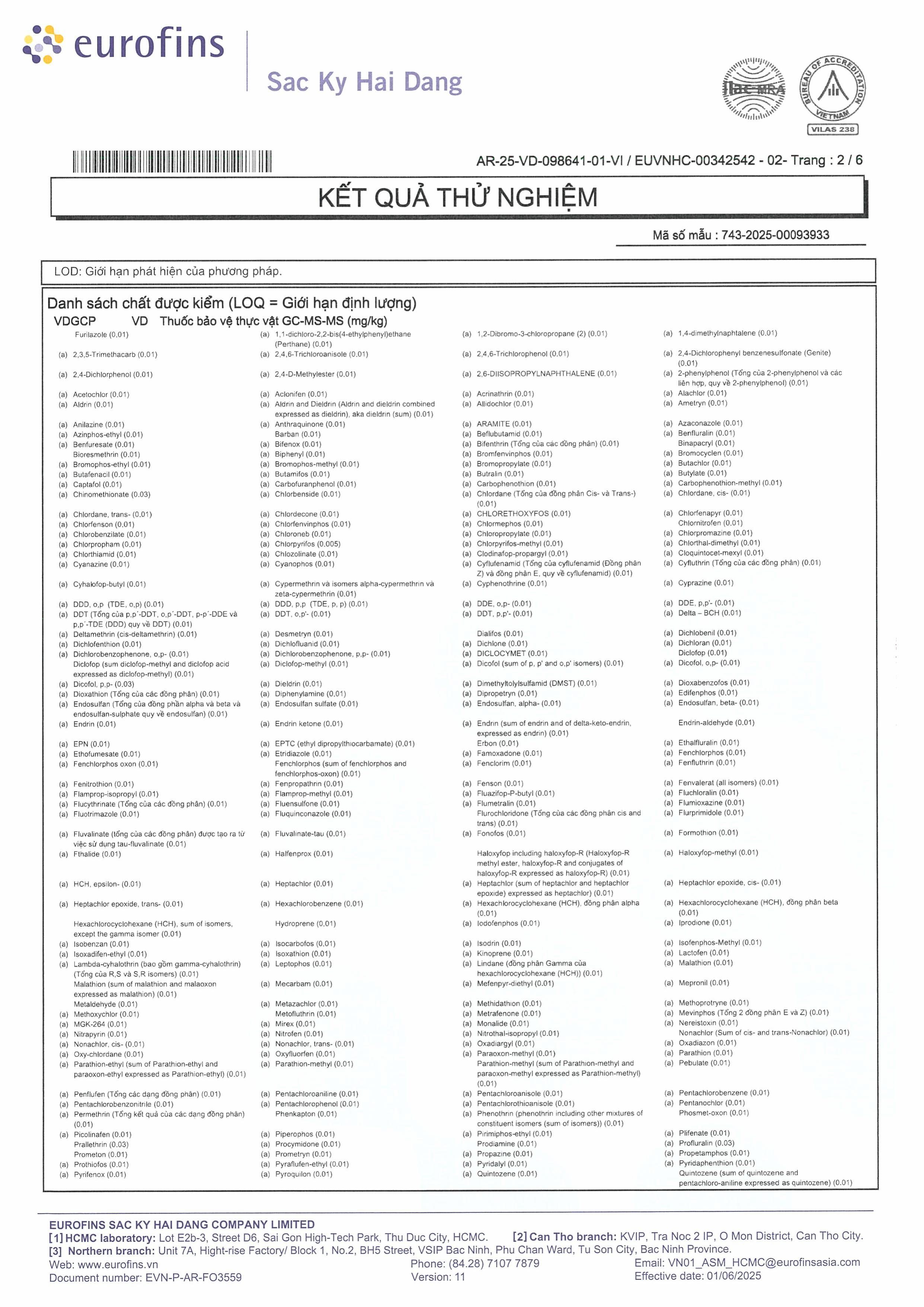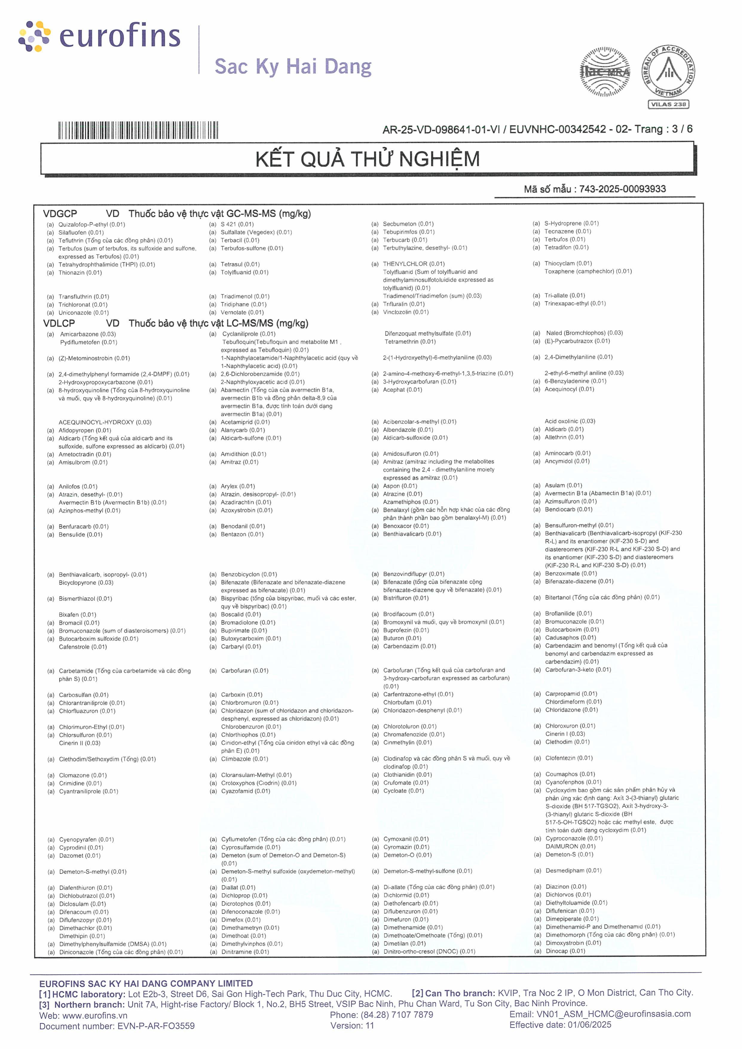 - Đáp ứng các tiêu chuẩn về dư lượng thuốc bảo vệ thực vật, kim loại nặng và các chỉ tiêu an toàn thực phẩm khác của Liên minh Châu Âu (EU). (Kết quả thử nghiệm của Eurofin đính kèm)