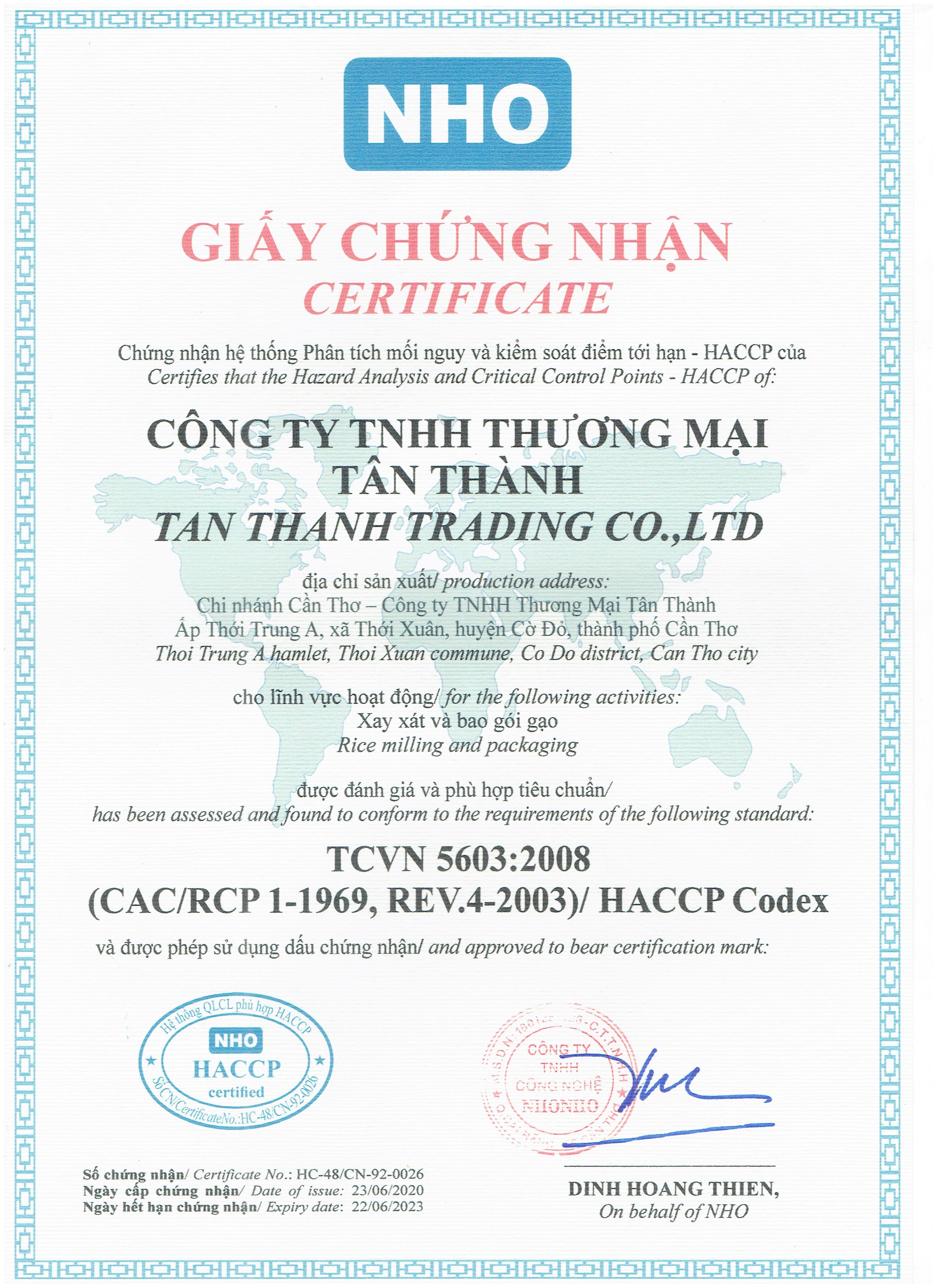 - Gạo sạch, đóng gói theo tiêu chuẩn Châu Âu (HACCP).