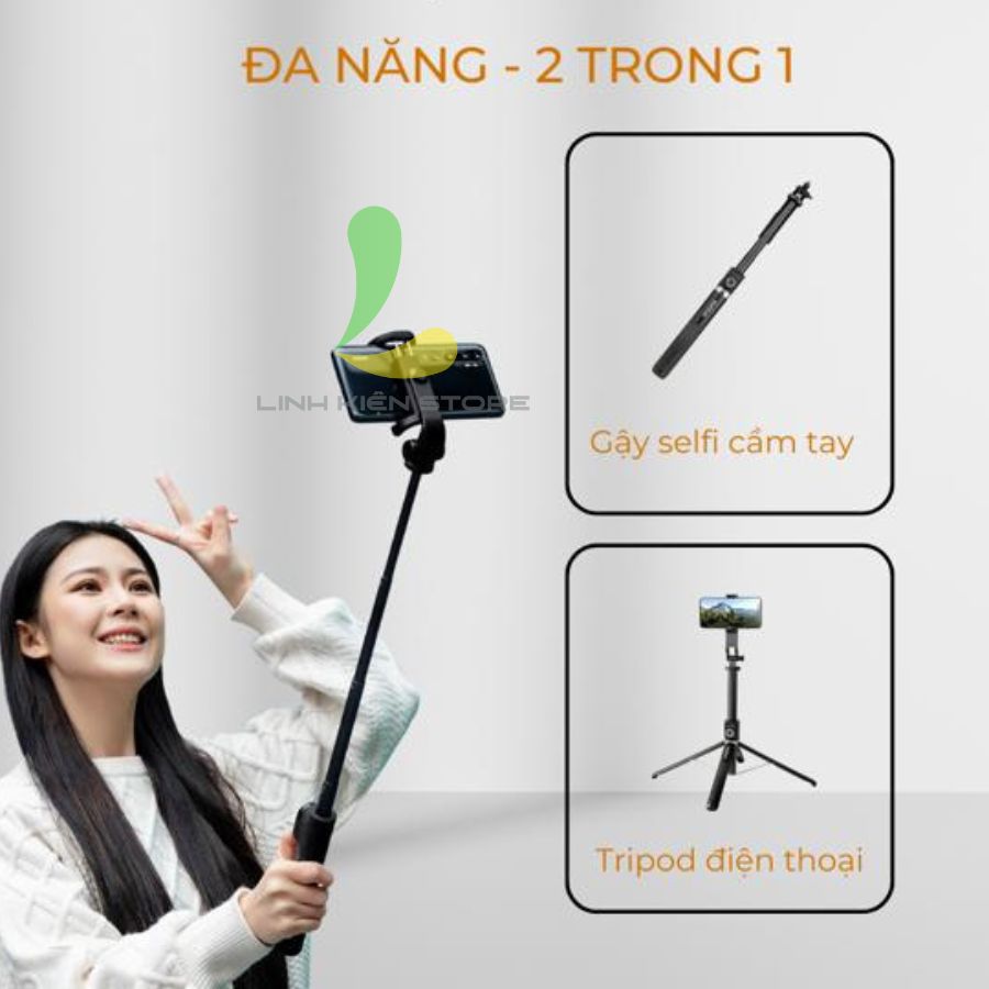- Điều khiển từ xa: Cho phép người dùng bắt đầu chụp ảnh/quay video từ xa. Kẹp điện thoại xoay 360 độ: Kẹp điện thoại chắc chắn, hỗ trợ điện thoại có kích thước 4.7 - 7 inches, khả năng xoay 360 độ giúp đa dạng góc quay/chụp
