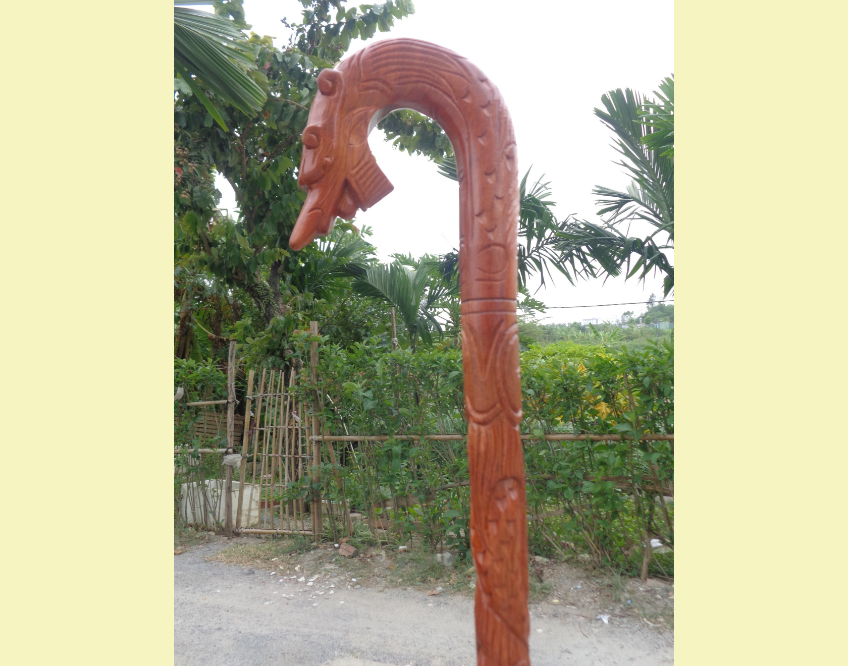 Gậy gỗ batoong chống cho người già -Đầu rồng thân trạm rồng- gỗ hương tự nhiên