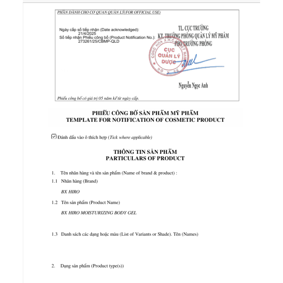 - Số ĐKSP: 273261/25/CBMP-QLD
