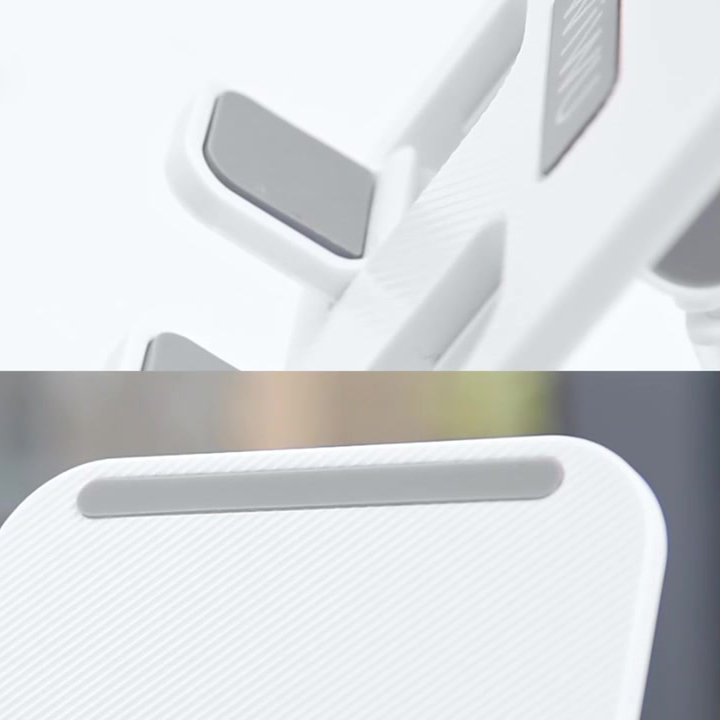 1. Color: White 2. Suitable for phones or tablets from 4.6 to 7.9 inches 3. Material: PC + ABS cover 4. Degree: 0-90 ° adjustable 5. Length adjustable: 44mm 6. Product size: L106 * W106