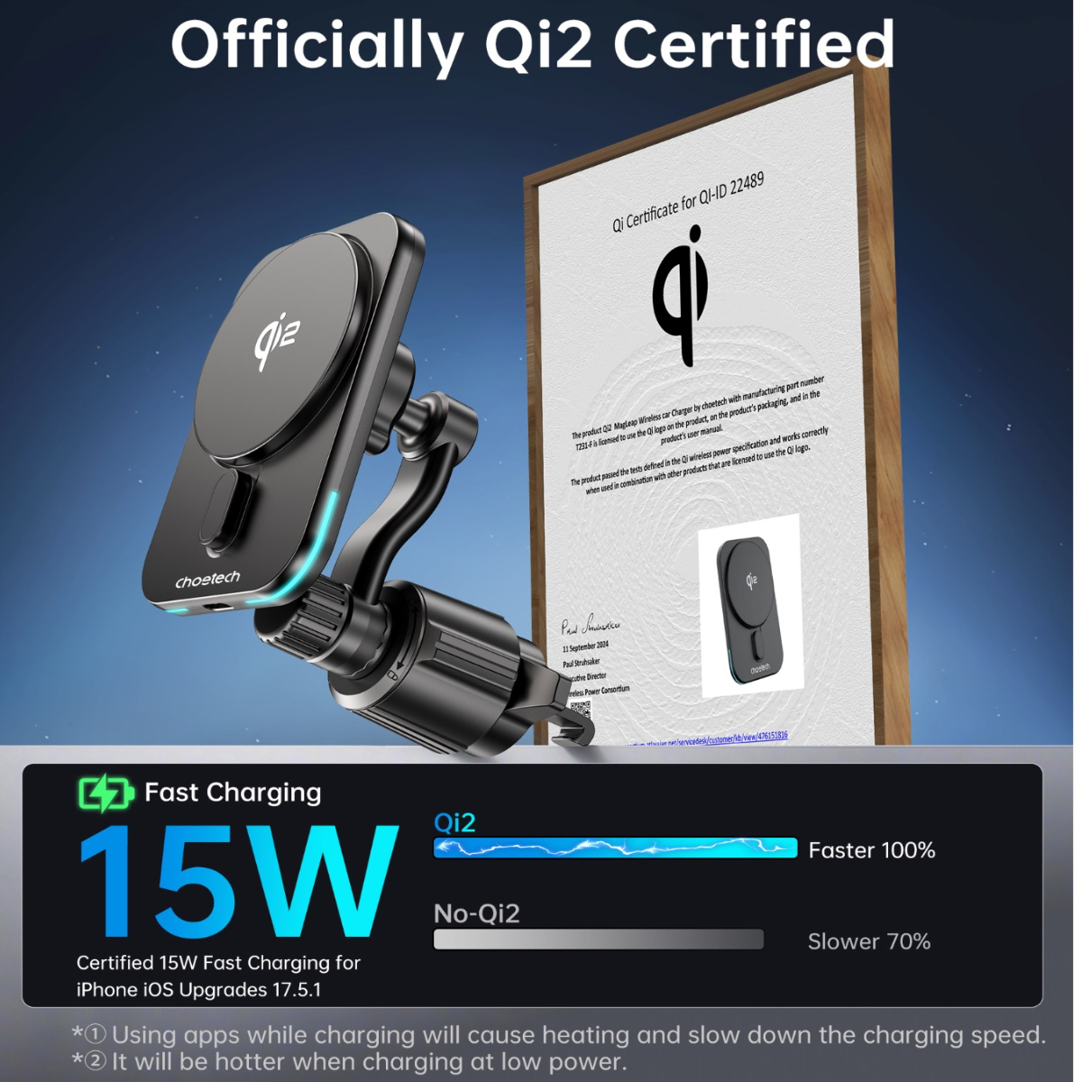 Mua tại TiktokGiới thiệu Giá đỡ sạc không dây trên ô tô Choetech T231 công suất 15w chuẩn Qi2 xoay 360 độ có tản nhiệt (Hàng chính hãng)