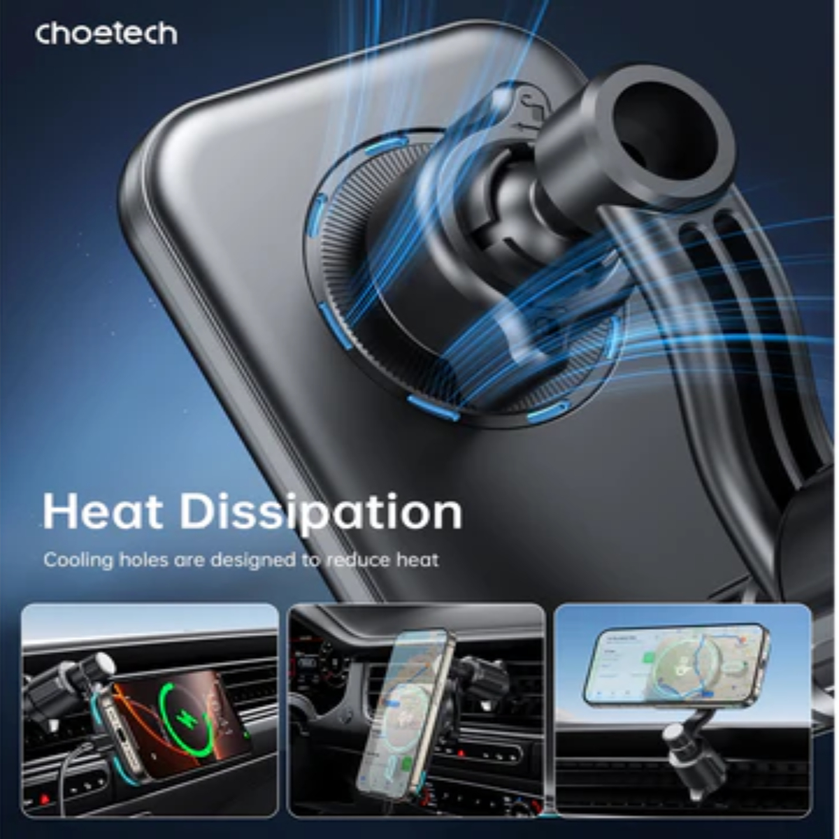 ✨Giá đỡ sạc không dây trên ô tô Choetech T231 công suất 15w chuẩn Qi2 xoay 360 độ có tản nhiệt (Hàng chính hãng)
