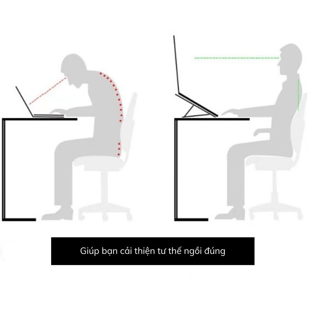 Giá đỡ máy tính xách tay với bảy bánh răng có thể điều chỉnh   Giá đỡ máy tính xách tay gấp nhỏ gọn cho tất cả các loại máy từ 12 đến 18 inch có thể điều chỉnh tất cả các loại vật liệu chất lượng cao Giá đỡ máy tính xách tay có thể điều chỉnh chiều cao khác nhau giúp giảm đau vai và thắt lưng, bảo vệ mắt, loại bỏ mỏi tay, thiết kế thông gió và tránh thiết bị quá nóng. Vật chất Vật liệu kim loại siêu cứng chất lượng cao bền với lớp phủ chống trầy xước Khi mở: dài 25 cm - cao 15,5 cm, rộng 18,5 cm Khi gấp: dài 25cm - rộng 4,3cm Máy tính xách tay tương thích (12 inch đến 18 inch) cho iMac、iPad、Microsoft Surface PR、Thinkpad、 Lenovo, Dell, HP và nhiều hơn nữa. Điểm nổi bật của khung tản nhiệt máy tính xách tay: Gia công chính xác, gia công chính xác cao Thiết kế mạnh mẽ, không rung, sử dụng không ổn định Có thể gập lại, có thể gập lại, trọng lượng nhẹ, dễ mang theo Tránh mệt mỏi lưng và đau vai khi sử dụng laptop thường xuyên Với miếng đệm cao su chống trượt Với công nghệ có thể gập lại, giá đỡ máy tính xách tay có trọng lượng nhẹ và dễ mang theo, phù hợp với nhiều dịp như văn phòng, thư viện, khuôn viên trường và ngoài trời. Giữ laptop luôn mát mẻ Thiết kế rỗng và điều chỉnh chiều cao làm tăng luồng không khí. Nền nhôm loại bỏ nhiệt từ máy tính xách tay.