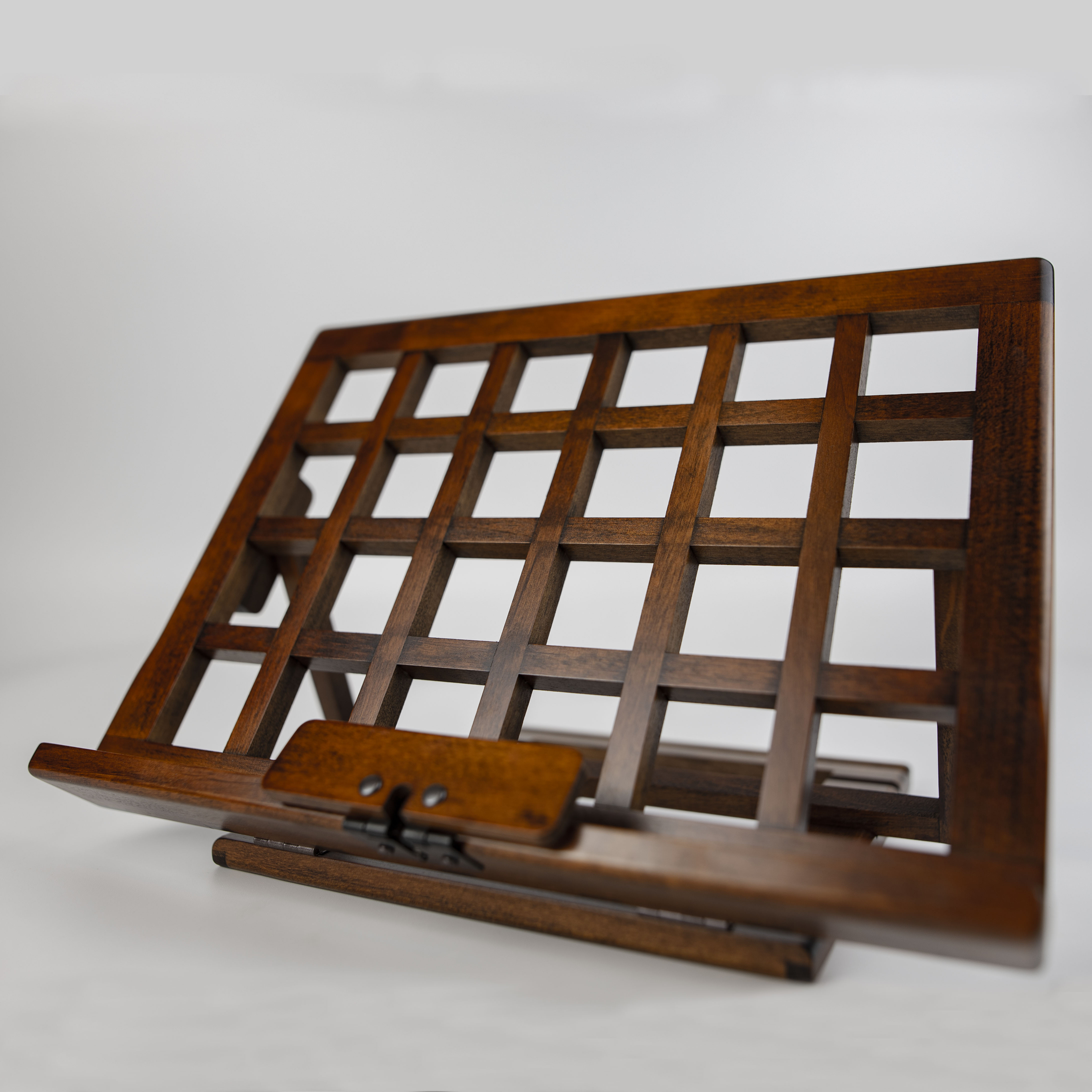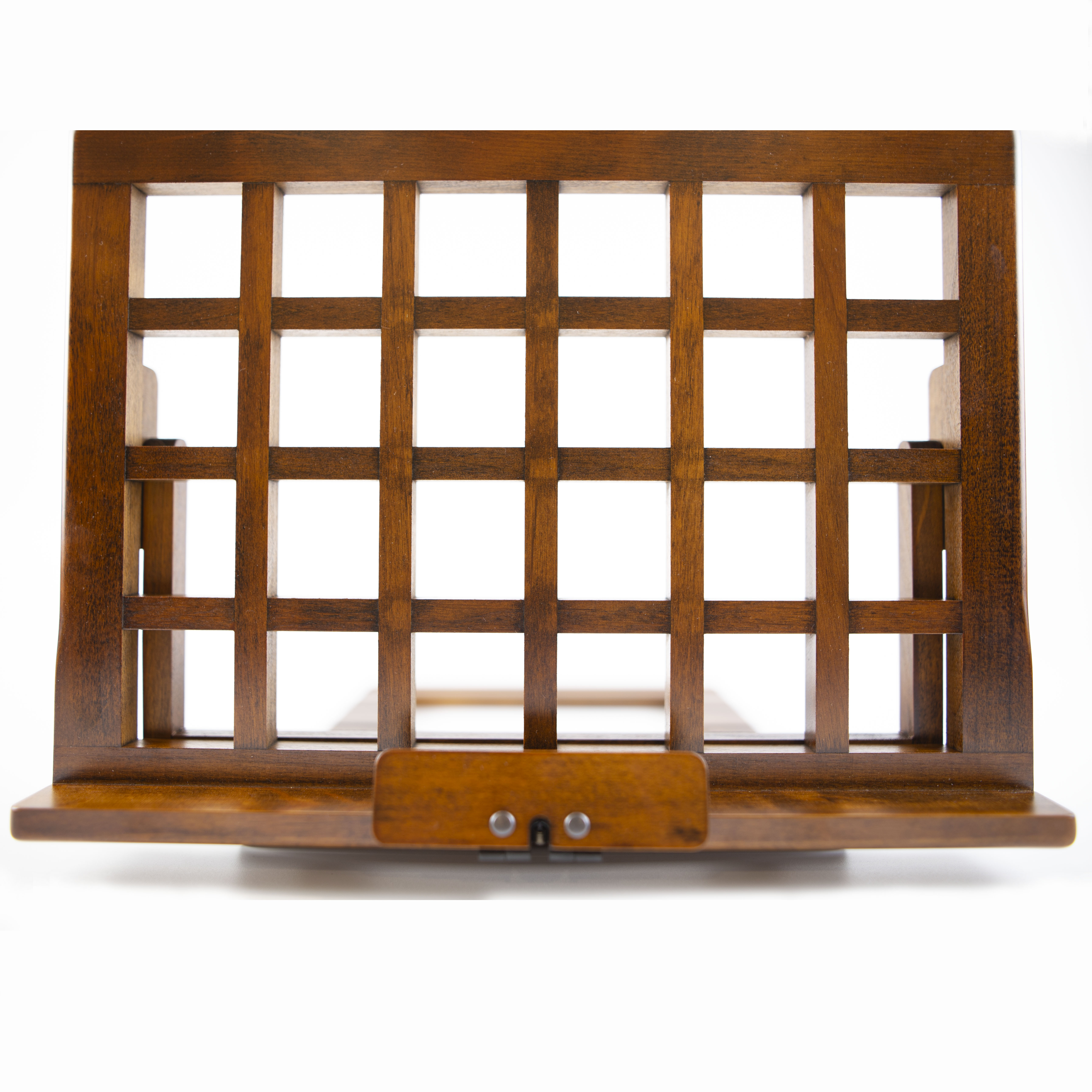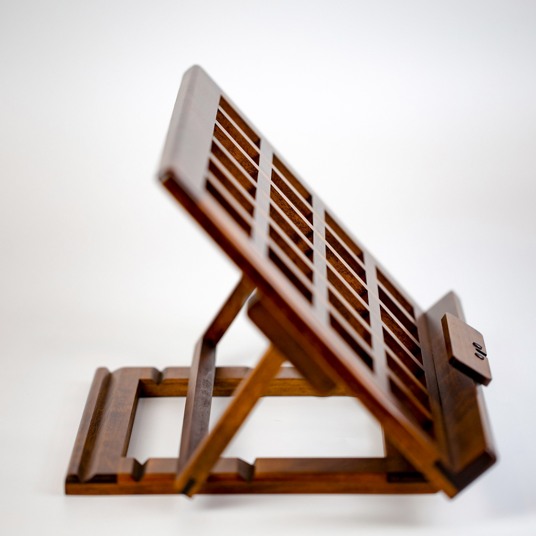 Góc đứng của khung đỡ sách có thể thay đổi theo 4 nấc từ 30 độ tới 60 độ và có thể gấp lại khi không sử dụng.