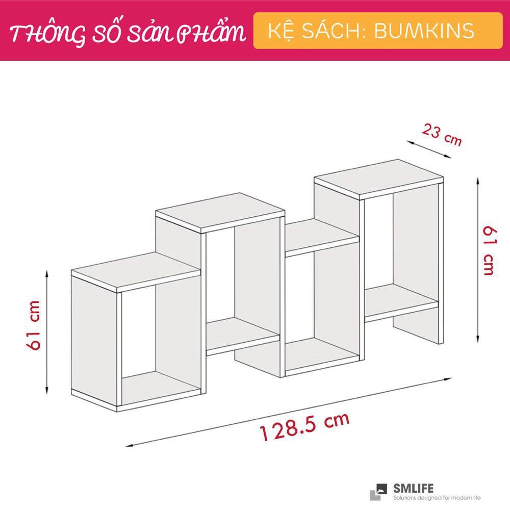 Kệ sách Bumkins được ví như một tác phẩm nghệ thuật với phong cách đơn giản sẽ giúp bạn xắp sếp những cuốn sách một cách sành điệu và độc đáo. Kệ sách Bumkins mang đến sự tinh tế, hiện đại cho phòng khách của bạn và đồng thời cung cấp một không gian lớn cho các vật dụng trang trí. Sản phẩm phù hợp cho mọi phong cách trang trí căn hộ và văn phòng làm việc. Sử dụng vật liệu ván ép công nghiệp MDF chống ẩm phủ Melamine cao cấp giúp kệ sách SMLIFE có độ bền cao, chống trầy và chống ẩm rất tốt. Bạn có thể tự lắp đặt sản phẩm dễ dàng với các phụ kiện và hướng dẫn đi kèm.