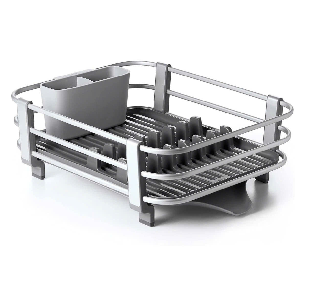 Giá để bát đĩa khung nhôm OXO Good Grips kết hợp tính linh hoạt của một bệ thiết kế mở với độ bền của khung nhôm. Tấm thoát nước có thể điều chỉnh và cốc đựng đồ dùng có thể tháo rời cho phép bạn kiểm soát mặt bàn bếp của mình. Và với giá để đĩa độc đáo, phần giữa mở và khung chắc chắn, Giá để bát đĩa này có thể đựng mọi thứ từ bát đĩa , nồi chảo, thìa dĩa,....