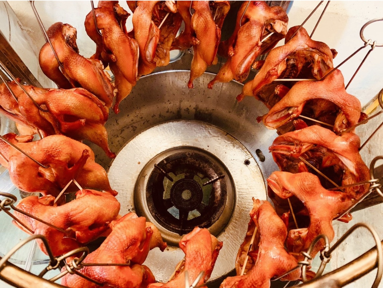 - Rượu hoa tiêu -Nước Bước 1: Sơ chế thực phẩm cho thật sạch, để ráo . Bước 2: Lấy kết nhựa cho tất cả ( Gói gia vị + Giấm + Rượu Hoa Tiêu + Nước ) vào quậy hoà tan , rồi xếp thực phẩm vào ( nhớ lấy tấm thớt nặng đè lên cho thực phẩm ngấm nước gia vị, đậy kín ) để 2 tiếng rồi trộn thực phẩm lên đều nhau. Tiếp tục, đè và đậy kín thực phẩm lại. Cho nguyên kết vào tủ đông để qua đêm. Bước 3: Hôm sau lấy kết ra, treo thực phẩm lên rồi cho vào lò quay hoặc xếp vào lò sấy , nhiệt độ 200 và thời gian 30-40phút ( trong quá trình trong lò phải nhớ canh thực phẩm, có thể trở đổi vị trí ) Thực phẩm đã chín lên màu vàng đẹp. Nếu chưa dùng, chúng ta bảo quản tủ đông, khi dùng làm nóng bằng lò vi sóng hoặc hấp.