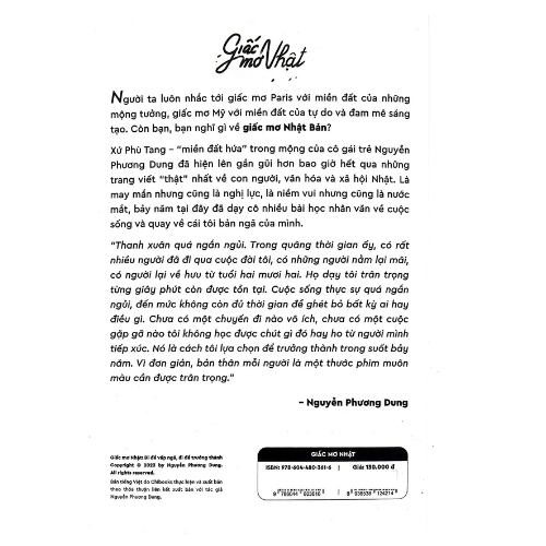 Xứ Phù Tang – “miền đất hứa” trong mộng của cô gái trẻ Nguyễn Phương Dung đã hiện lên gần gũi hơn bao giờ hết qua những trang viết “thật” nhất về con người, văn hóa và xã hội Nhật. Là may mắn nhưng cũng là nghị lực, là niềm vui nhưng cũng là nước mắt, bảy năm tại đây đã dạy cô nhiều bài học nhân văn về cuộc sống và quay về cái tôi bản ngã của mình.