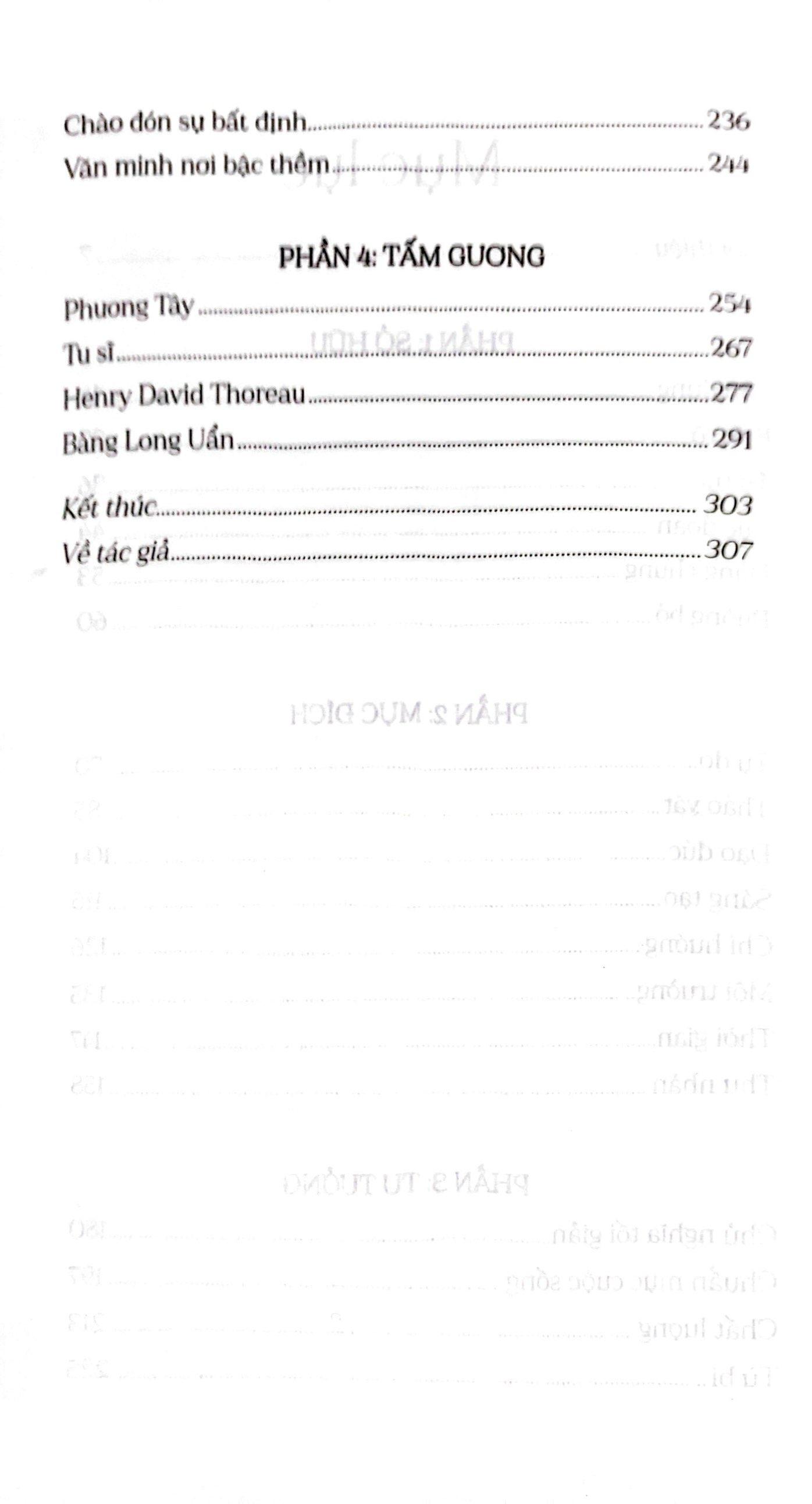 Cuốn sách này không phải là một cẩm nang về cách sống, hay hướng dẫn bạn thực hành một lối sống chuẩn mực. Thay vào đó, cuốn sách đi sâu hơn trong việc lý luận và xây dựng một hệ thống tư tưởng cho một cuộc sống đơn giản và hiệu quả.