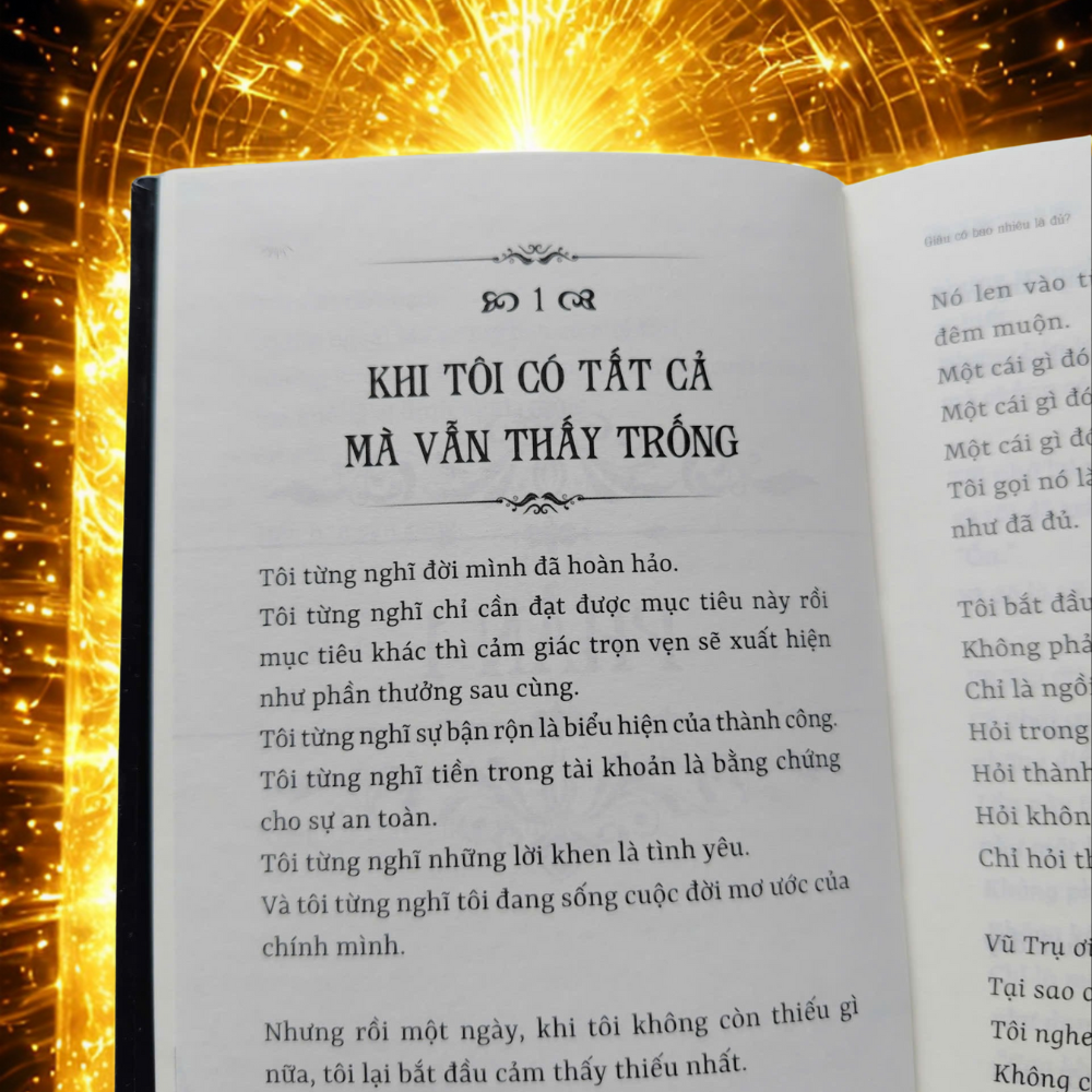 Có người sống giữa đủ đầy, nhưng chưa bao giờ thấy mình thật sự “giàu có”. Giàu Có Bao Nhiêu Là Đủ? không giống bất kỳ cuốn self-help nào dạy làm giàu ngoài kia. 👉 Đây không phải là công thức kiếm tiền, cũng không phải bí kíp quản lý tài chính. Mà là một cuộc trò chuyện sâu sắc và tĩnh lặng giữa “kẻ đã có tất cả” và “vũ trụ”, để bạn tìm lại định nghĩa thật sự của sự giàu có. 📖 Bạn sẽ tìm thấy gì trong cuốn sách này?