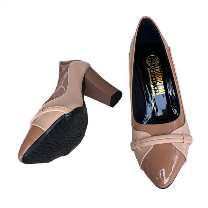 - Giày cao gót 7cm da bóng Trường Hải có Form giày chuẩn ôm gọn đôi bàn chân với chiều cao 7cm mang dễ dàng di chuyển để đi học đi làm, đi chơi
