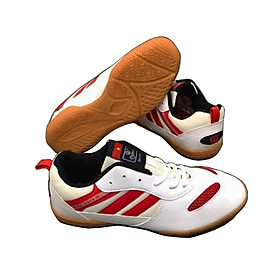 Giày Cầu Lông Mới Nhất Đa Năng Trắng Sọc Đỏ Kiểu dáng thể thao, mạnh mẽ,phù hợp với các bạn trong độ tuổi 12-35 - Đế cao su bền chắc, có độ bám cao. -