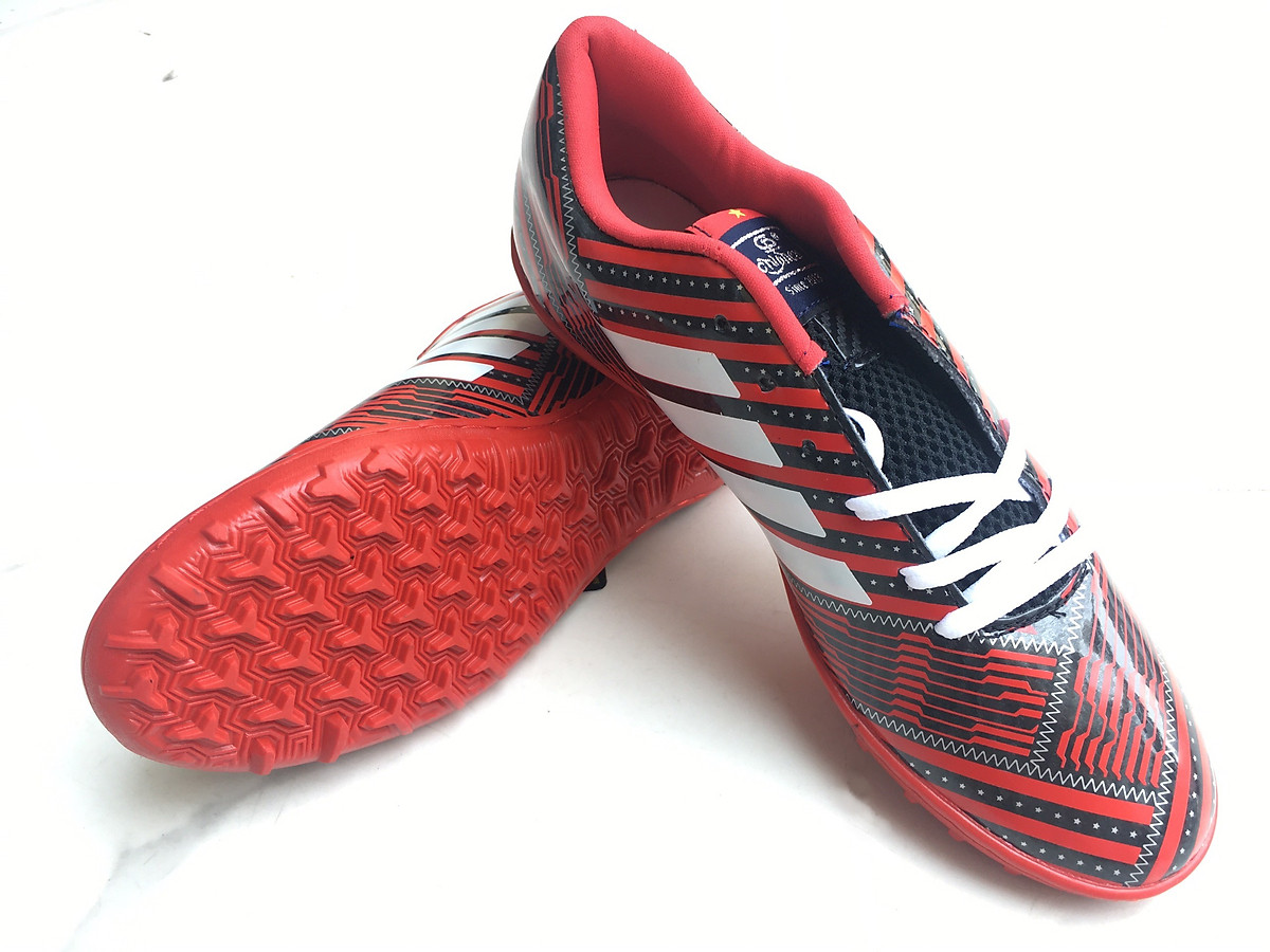 Giày Đá Bóng được làm theo tiêu chuẩn sân cỏ Việt Nam, chất liệu đế từ cao su thiên nhiên, bề mặt giày được tạo bởi chất da nhân tạo có độ bóng chống thấm nước, chống bám bẩn cho bạn một đôi giày hoàn hảo khi hoạt động thể thao. Ngoài ra với lớp đinh có độ cao nhỏ theo hình tròn còn hỗ trợ người chơi có đà tăng tốc tốt hơn.