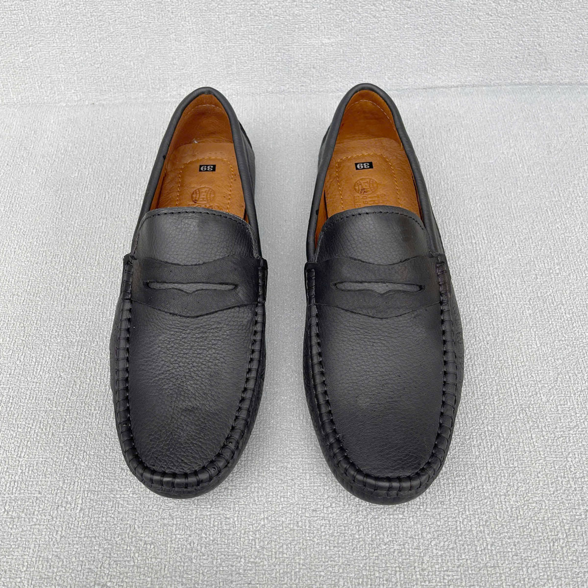 Tên sản phẩm: Giày Lười Nam Trường Hải Đế Âm da bò nguyên tấm 2 màu đen, vàng GL330