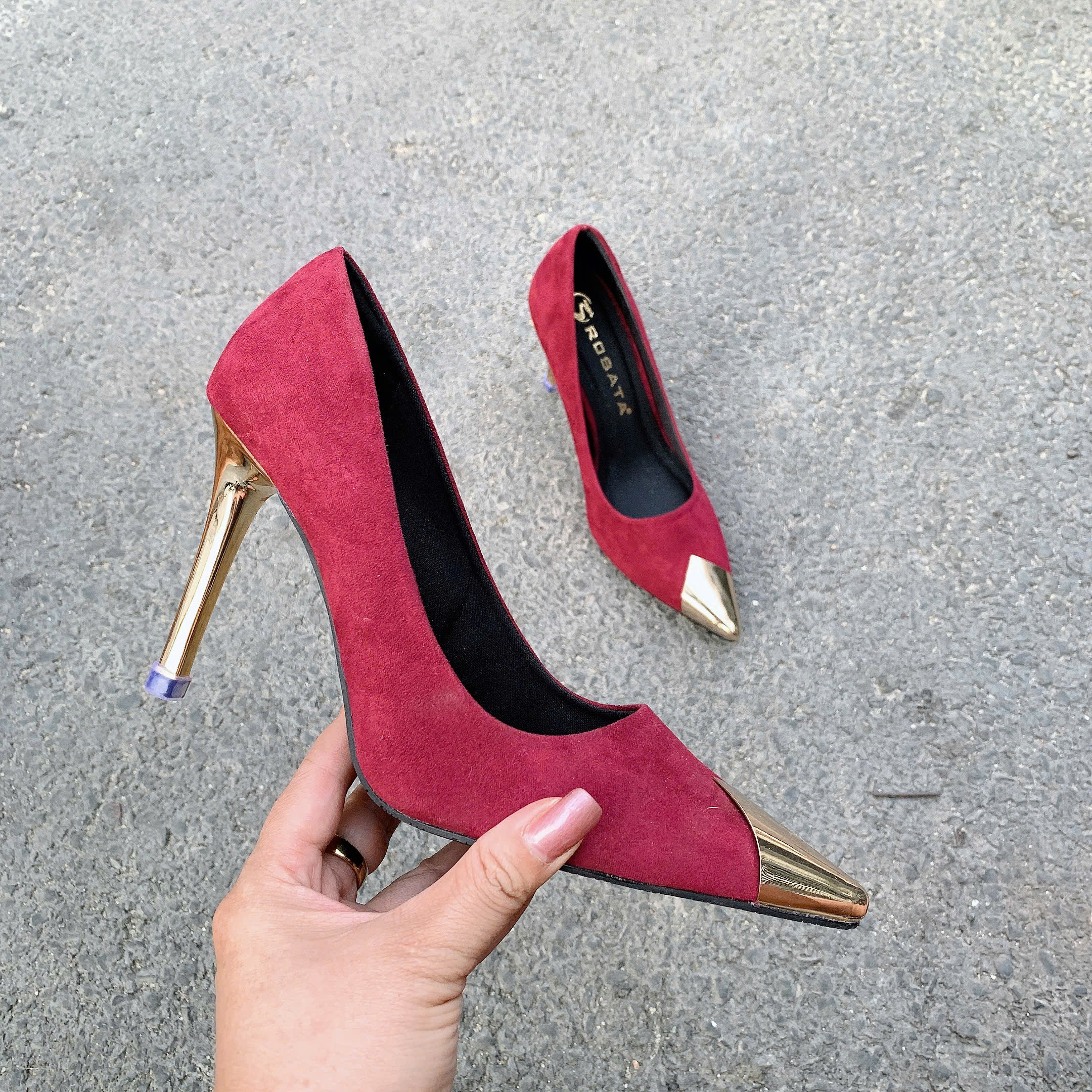 MÔ TẢ SẢN PHẨM: Giày nữ cao gót nhọn, da lộn ROSATA RO695 -9p- Nâu, Đỏ - HÀNG VIỆT NAM - BKSTORE