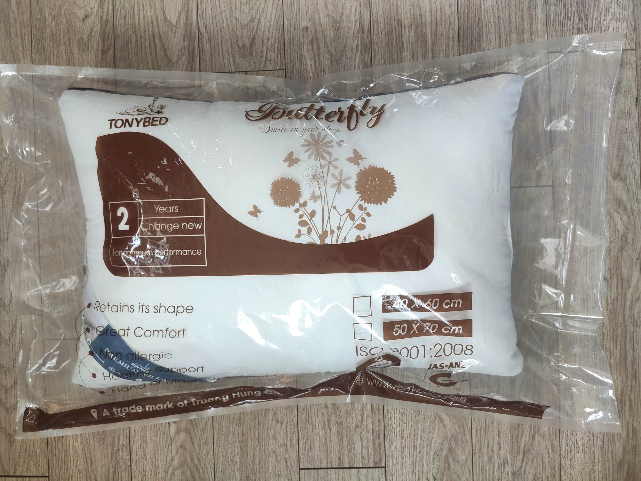 Gối Butterfly Được làm từ gòn bông bi cao cấp gồm những hạt gòn nhỏ, trò, có kích thước ngang nhau cùng với dây chuyền, máy móc hiện đại tạo nên những sản phẩm gối có hình dáng và độ êm ái, bền bỉ ưu việt. Tính năng: