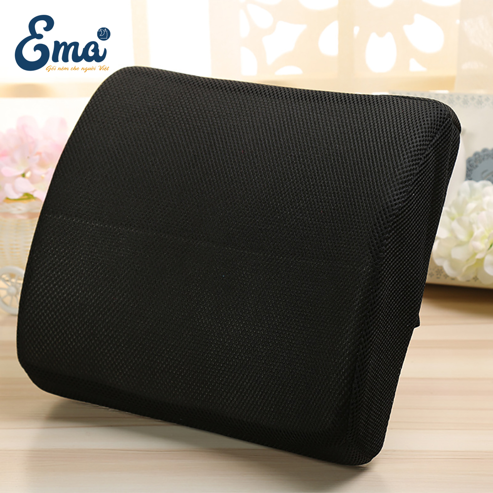 - Với thiết kế công thái học gối tựa lưng Ema giúp người sử dụng giữ cột sống thắt lưng luôn ở trạng thái thẳng cộng thêm với chất liệu từ Memory Foam với đặc tính đàn hồi chậm giúp giảm áp lực lên vùng thắt lưng. Do đó, khi ngồi lâu với gối tựa lưng Ema sẽ không gây cảm giác đau, mỏi thắt lưng như với việc không sử dụng gối.