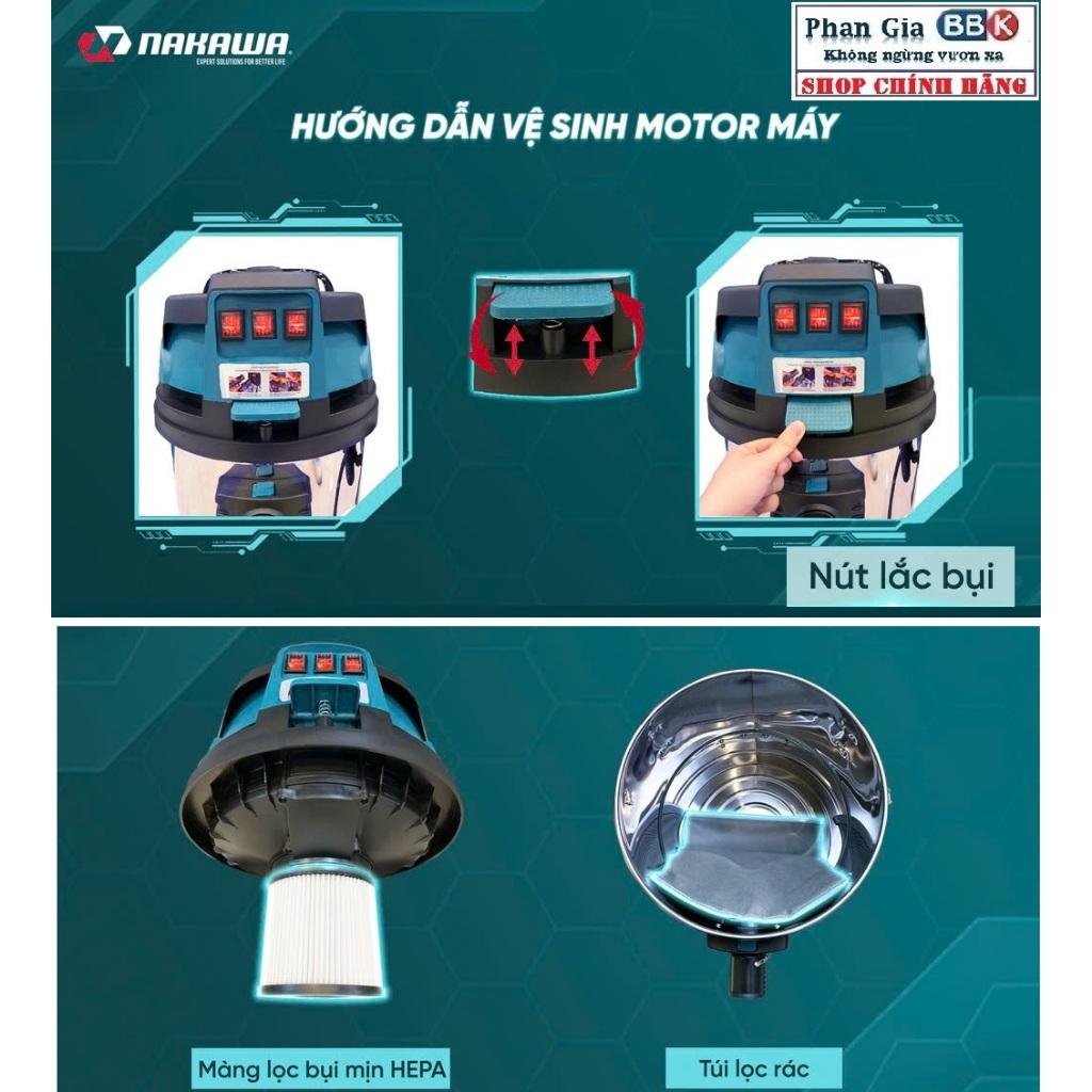 - Máy hút bụi công nghiệp NAKAWA là sản phẩm hút bụi khô và ướt với thiết kế thông minh , có thể hút được ở mọi ngóc ngách như sàn xe , trần xe , ghế ngồi ,... chuyên dùng cho các garage oto cũng như gia đình mà được khách hàng đánh giá cao hiện nay.
