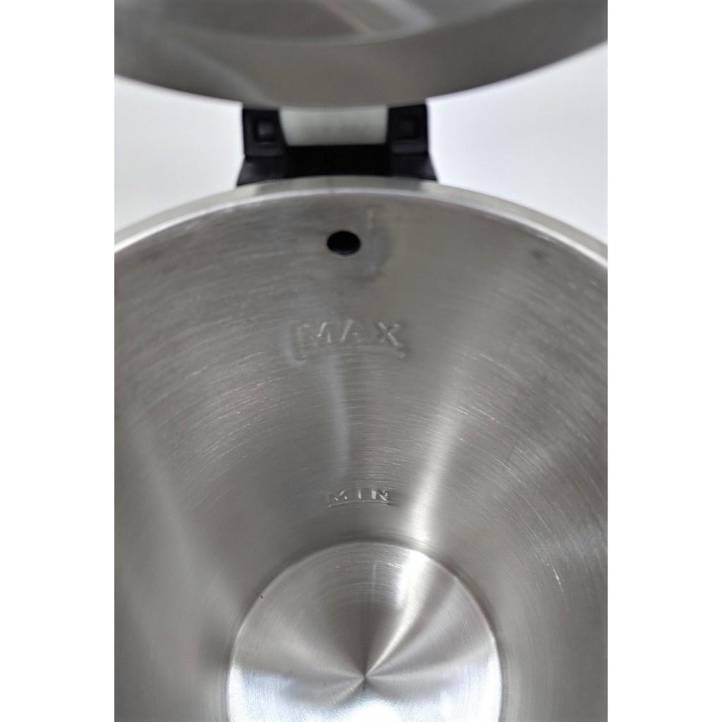 Dung tích: 1.7L Công suất: 1800W Ưu điểm nổi bật: 2 lớp cách nhiệt: Thép không gỉ bên trong, nhựa mát tay bên ngoài – an toàn tuyệt đối, nhất là với gia đình có