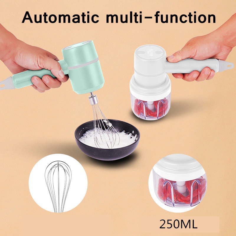 ✨Hàng Chính Hãng - Bộ Máy Đánh Trứng Kèm Xay Tỏi Ớt, Đánh Kem, Trộn Bột, Máy Cầm Tay Không Dây Đa Năng Tiện Dụng 3 Trong 1