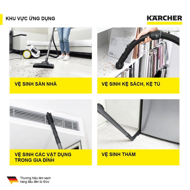 - Karcher mang đến giải pháp làm sạch toàn diện từ vệ sinh sân vườn, vệ sinh nhà cửa cho đến xe, các dụng cụ, vệ sinh bể bơi, tolet...