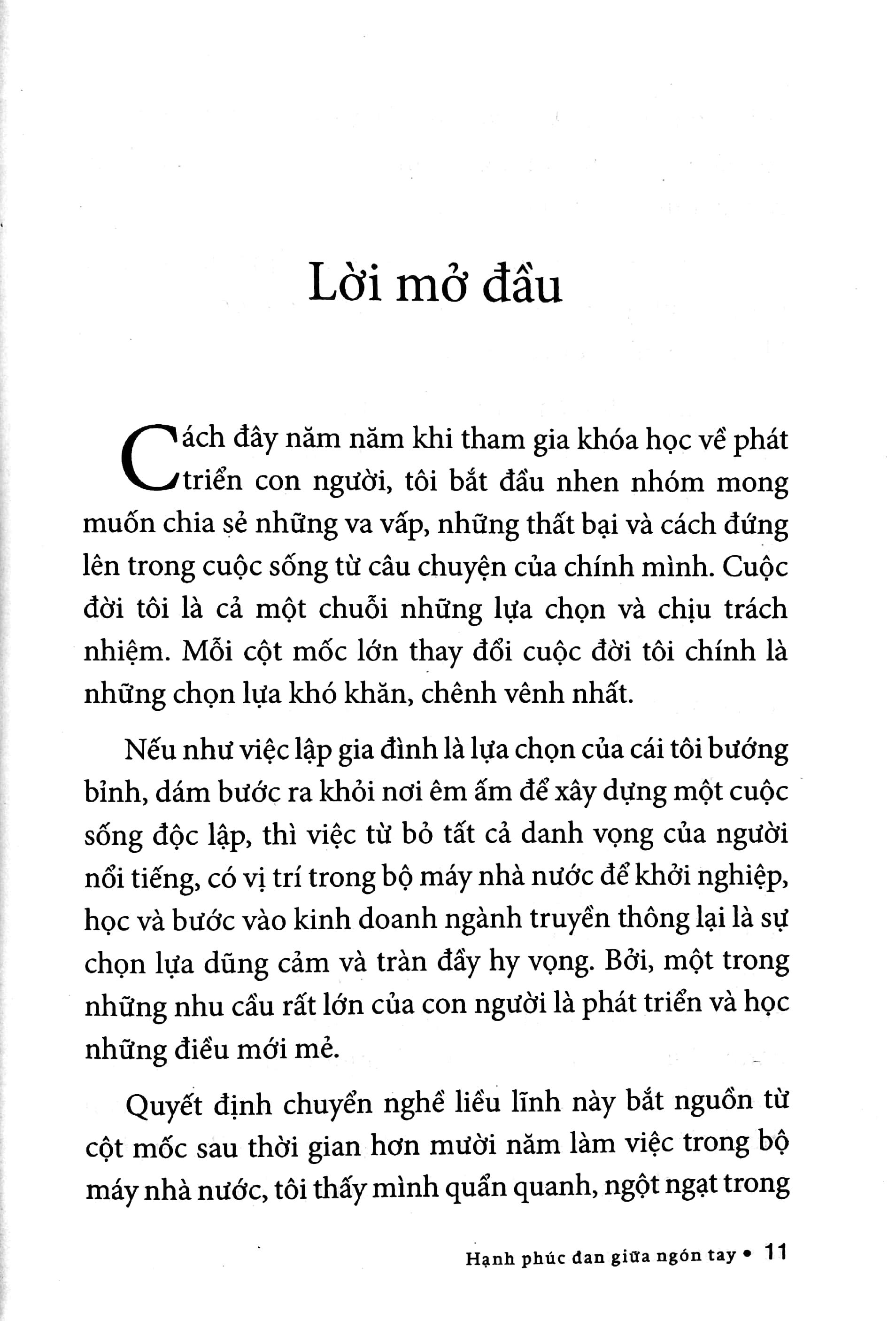 Hạnh Phúc Đan Giữa Ngón Tay của tác giả Minh Hương. Nguyễn là quyển sách viết theo tâm thế “Trong đời sống này, sự khổ đau hay sung sướng, hoan lạc hay sầu thảm cũng chính là từ lúc chúng ta tự ý thức gieo lấy hạt giống gì trong ngay trong lòng mình. Gieo niềm vui gặt tiếng cười. Gieo âu lo gặt phiền muộn. Gieo gió gặt bão”.