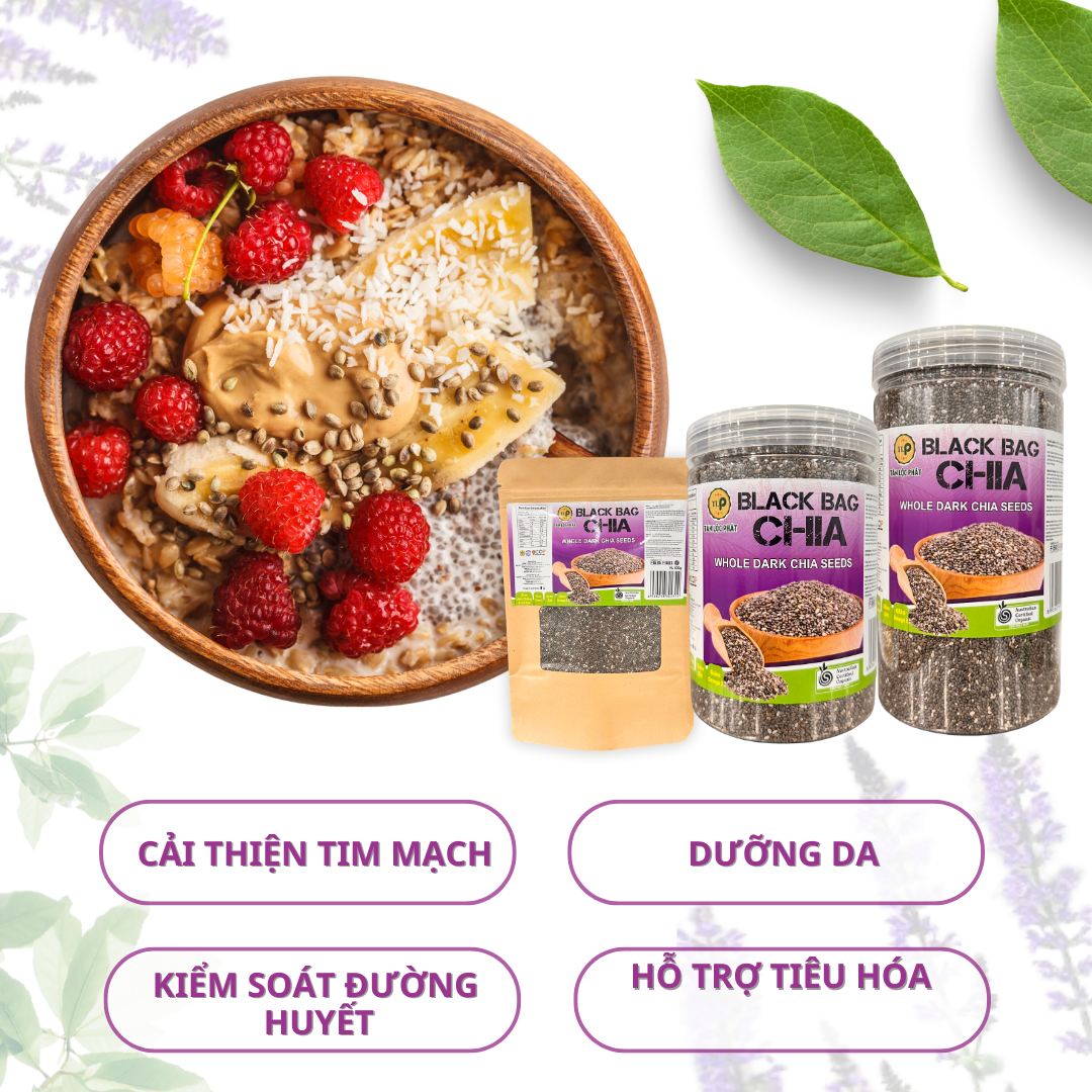 Với gói hạt chia, bạn có thể thêm chúng vào các món ăn như smoothie, salad, hoặc làm nguyên liệu cho bánh, pudding và món ăn sáng. Sản phẩm này không chỉ giúp cung cấp năng lượng cho cơ thể mà còn hỗ trợ tiêu hóa và duy trì sức khỏe tim mạch.