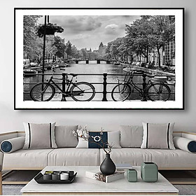 Tranh treo tường vải canvas trang trí phong cảnh hội an trắng đen trang trí (tặng kèm đinh)  Tranh treo tường sài gòn xưa trắng đen 7 trang trí decor quán nhà hàng khách sạn