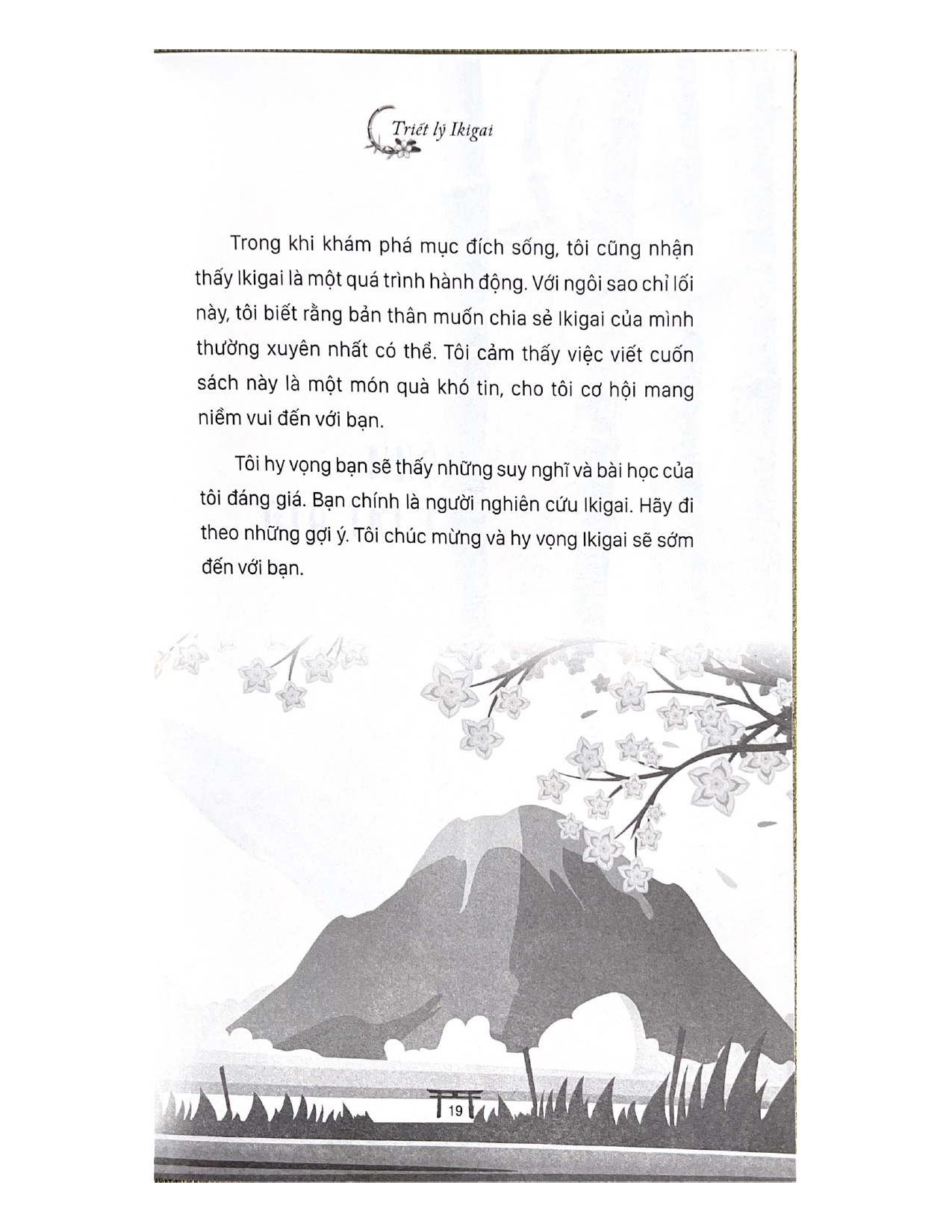 Chào mừng đến với Ikigai – giá trị cuộc sống của bạn. Ikigai là “lý do khiến bạn rời khỏi giường vào mỗi sáng”. Nó là những điều bạn làm mỗi ngày, có ý nghĩa với bạn và người khác. Ngay bây giờ, bạn có thể không biết Ikigai của mình là gì, nhưng quyển sách này sẽ giúp bạn tìm ra, thông qua bản đồ Ikigai với bốn hướng đơn giản cần theo: