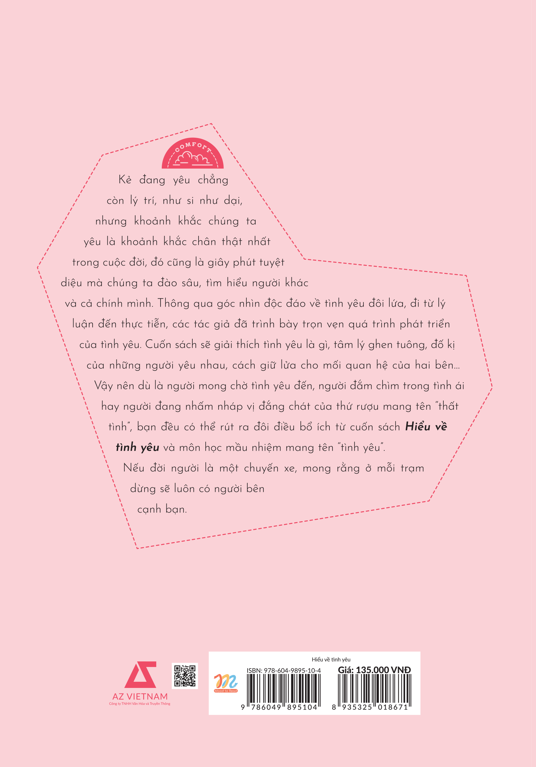 Hiểu Về Tình Yêu “Hỏi thế gian tình ái là chi? Để đôi lứa thề nguyền sống chết.” Nhắc đến tình yêu, đây là một đề tài quen thuộc đã tốn biết bao giấy mực của các nhà thơ nhà văn từ cổ chí kim. Đây cũng là một đề tài chẳng hề xa lạ, gắn liền với cuộc sống của mỗi người chúng ta. Tình yêu lứa đôi luôn thể hiện những cung bậc cảm xúc dạt dào, mãnh liệt, tự do và thuần khiết. Hơn nữa, tình yêu không phải bao giờ cũng đong đầy cảm xúc yêu đương, nồng cháy, thiết tha mà đằng sau yêu thương, mong nhớ, gần gũi còn là sự biệt ly, chia cách. Bạn hiểu thế nào về tình yêu? Bạn có biết cách khiến cho một mối quan hệ “khỏe mạnh”? Giới thiệu đến bạn một cuốn sách mà chuyên gia tâm lý khuyên đọc: “Hiểu về tình yêu” - đây là một cuốn cẩm nang “dạy yêu”: