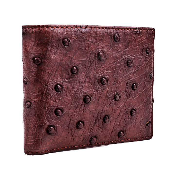 Bóp/Ví da đà điểu Huy Hoàng da bụng kiểu đứng màu nâu đất, nâu đỏ, đen, vàng bò 2408-09-10-18
