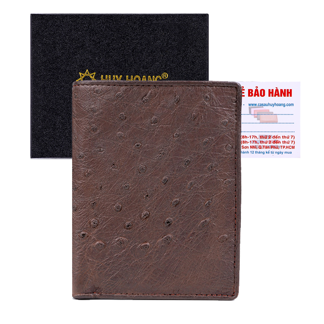 Bóp/Ví da đà điểu Huy Hoàng da bụng kiểu đứng màu nâu đất, nâu đỏ, đen, vàng bò 2408-09-10-18