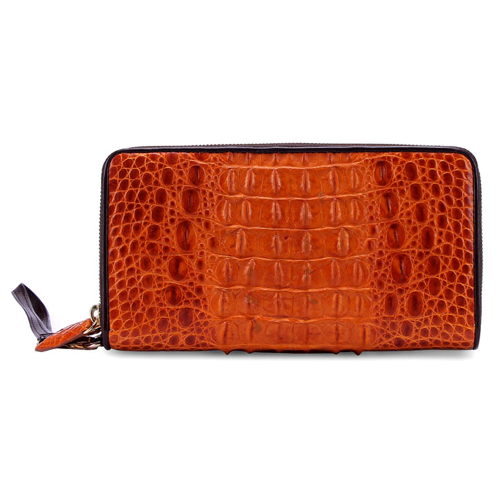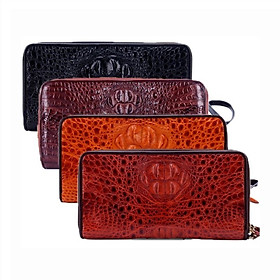 Ví da cá sấu cầm tay 2 ngăn khoá kéo | Ví cầm tay màu nâu đỏ