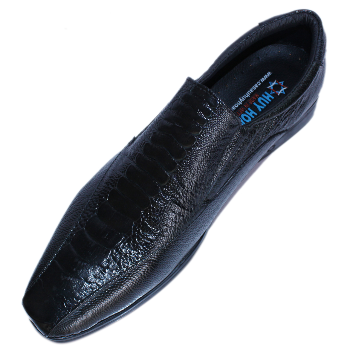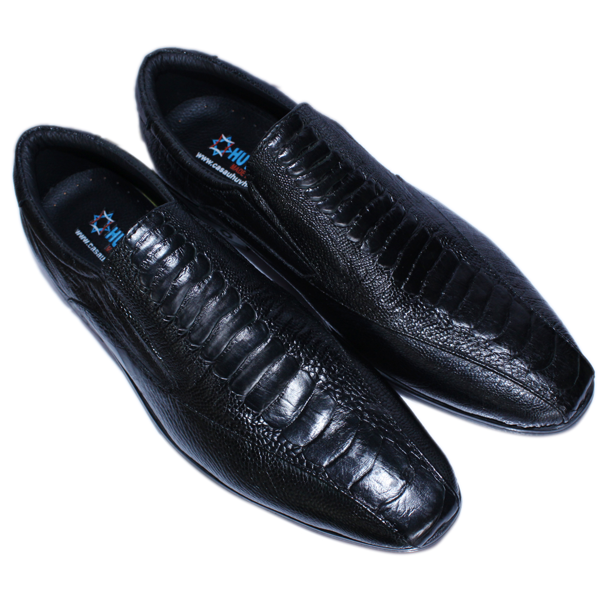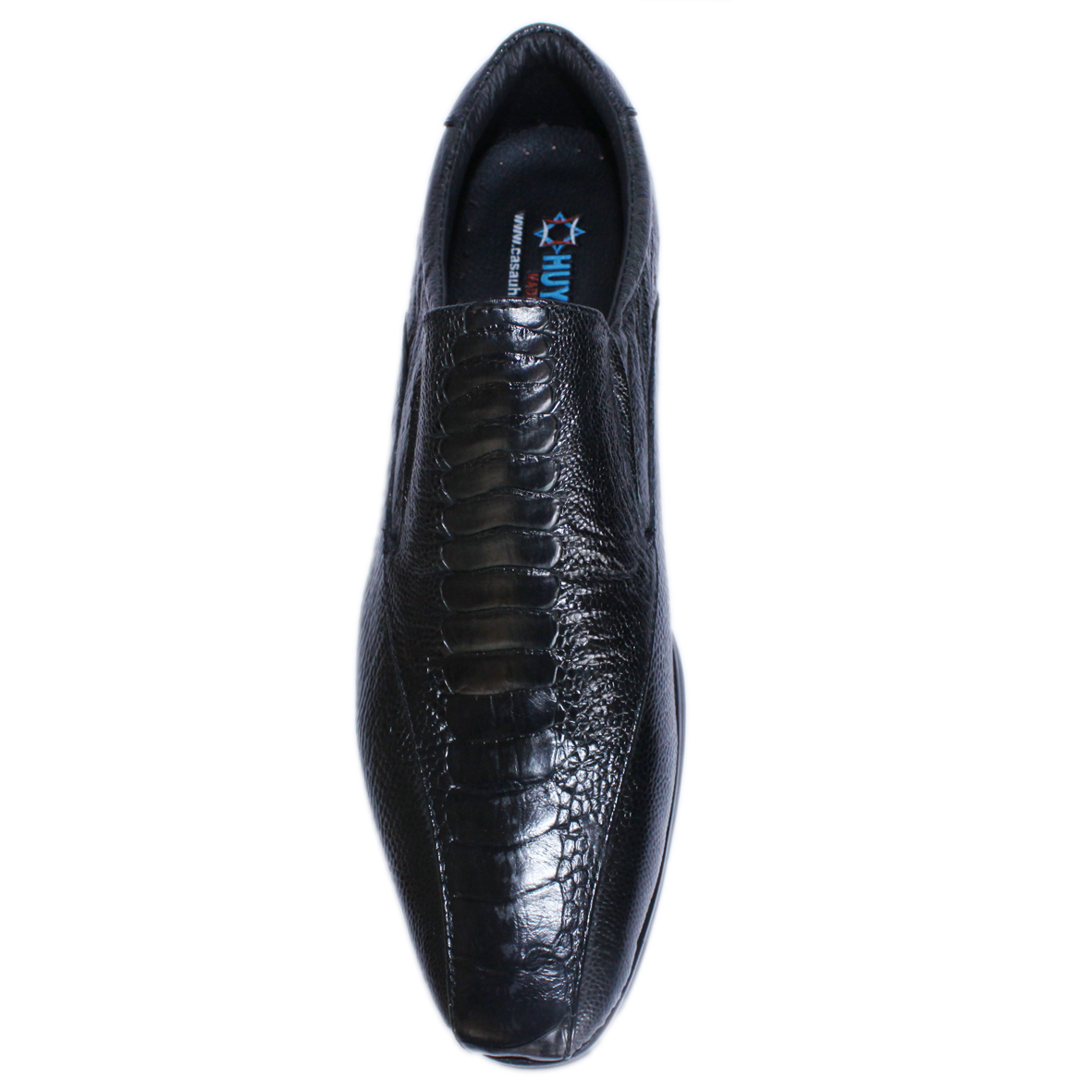 - Giày nam Huy Hoàng được làm từ chất liệu da đà điểu cao cấp nên càng sử dụng lâu bề mặt sẽ càng bóng đẹp tự nhiên. Da đà điểu mềm mại sẽ hạn
