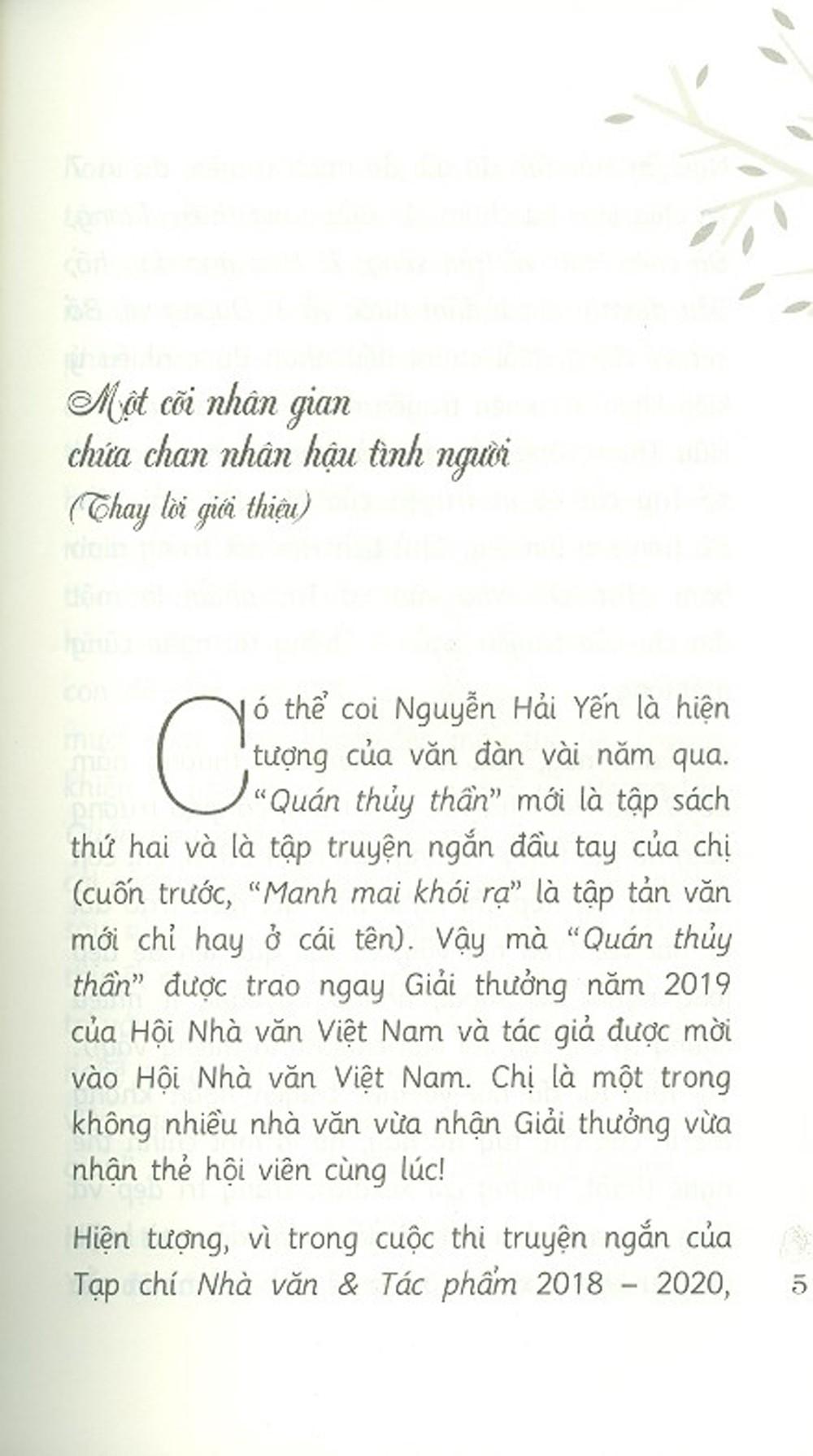 “…Những ngón tay run run chạm khẽ vào chiếc ấm đất, màu men tím thẫm ngả sang ánh tối rồi dựng lại ở vệt trắng mờ cong cong như cánh hoa khô… Nó chỉ dùng pha duy nhất một loại trà… Đây là chiếc ấm đất Tử Sa nhưng pha thêm chút tro hoa bưởi… Trà xuân núi Ngọc ướp hương bưởi rừng Thung Mây không chỉ thơm mùi hoa mà còn tròn nguyên vị sương của núi, nó chát đằm mà mượt như lụa, vừa nồng nàn hối hả như thời gian hữu hạn, lại êm và ngọt lửng lơ lững thững như khí xuân chưa muốn giao mùa…” (Trích Hoa gạo đáy hồ).