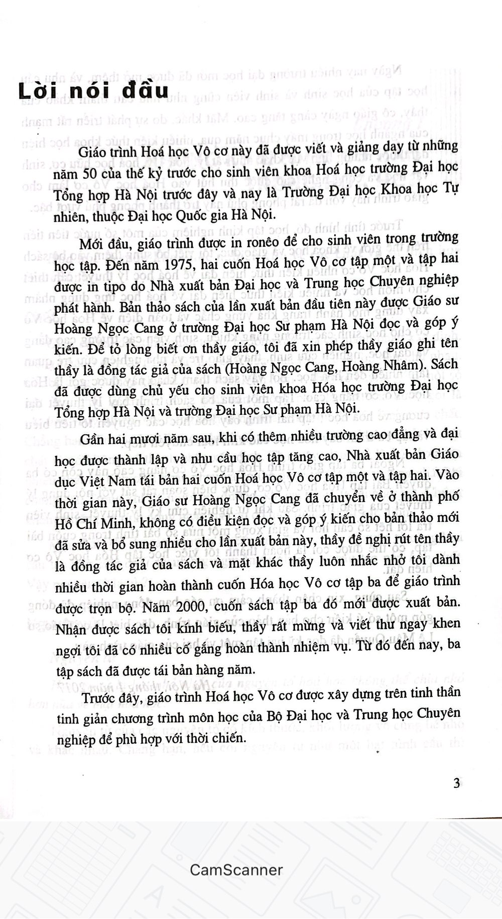 Giáo trình Hoá học Vô cơ này đã được viết và giảng dạy từ những năm 50 của thế kỷ trước cho sinh viên khoa Hoá học trường Đại học Tổng hợp Hà Nội trước