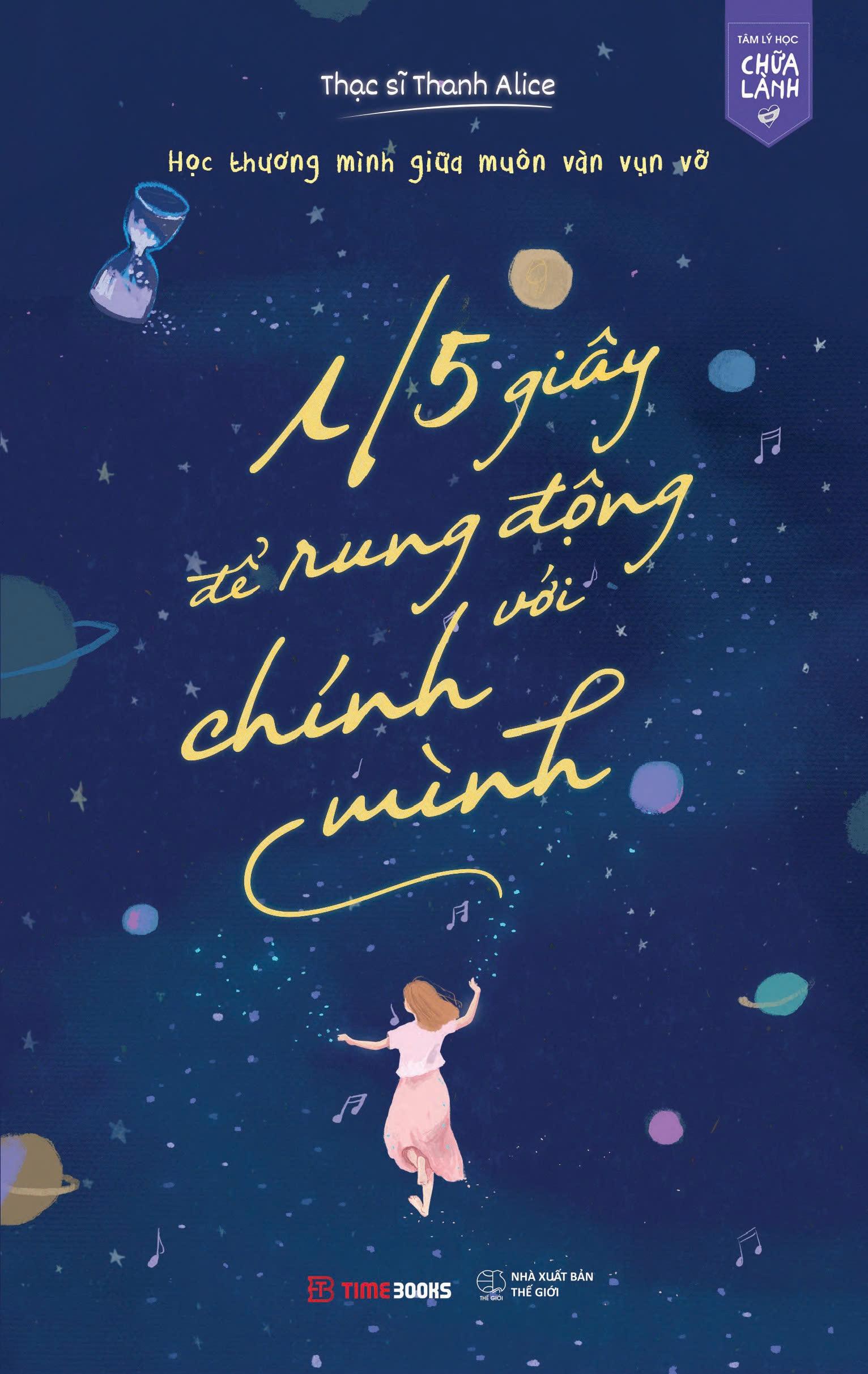 - Là một cô gái dịu dàng tin vào giá trị riêng biệt bên trong mỗi người. Giới thiệu tác phẩm: 1/5 giây để rung động với chính m.ình - Học thương m.ình giữa muôn vàn vụn vỡ Dành tặng bạn, người tự ti với nỗi lo không đủ tốt Cuốn sách tổng hợp 60 bài học chăm sóc sức khỏe tinh thần, giúp bạn thêm tin yêu bản thân Cùng bạn đi qua những vụn vỡ để tìm thấy dáng vẻ rực rỡ nhất của chính m.ình — NẾU CẦN 1/5 GIÂY ĐỂ RUNG ĐỘNG VỚI MỘT NGƯỜI, TÔI SẼ CHỌN CHÍNH MÌNH! “Chúng ta chỉ mất 1/5 giây để phải lòng 1 người. Người ta thường gọi đó là tình yêu sét đánh. Vậy tại sao chúng ta không thể dễ dàng yêu thương bản thân như cách chúng ta dễ dàng yêu một ai khác? Tại sao yêu thương bản thân lại cần nhiều điều kiện đến vậy? Sao ta không thể dành 1/5 giây để rung động với chính m.ình?” Bởi thế giới của người lớn là thế giới của định kiến, của quy chuẩn về đạo đức, giới tính, của những “nhãn mác” về thành công, hạnh phúc, của những tình yêu thương có điều kiện... Chúng ta đã lớn lên trong thế giới ấy với một trái tim đầy sợ hãi và nghi hoặc về chính m.ình. Những “vết thương”, những va vấp trên hành trình học cách trưởng thành khiến chúng ta dần tự ti, sợ rằng m.ình không đủ tốt, dần khép m.ình và chối bỏ những cảm xúc sâu thẳm bên trong. Thật ra, dù chúng ta có phớt lờ những gì m.ình cảm thấy mỗi khi tan vỡ, “đứa trẻ bên trong” ta vẫn luôn “thắt” lại, nhắc nhở rằng “đứa trẻ” ấy cũng cần được yêu thương và chữa lành. Thông qua 60 câu chuyện và bài tập thực hành nâng cao sức khỏe tinh thần trong cuốn sách “1/5 giây để rung động với chính m.ình?” - tác giả, thạc sĩ giáo dục Thanh Alice muốn nhắn nhủ tới bạn rằng: