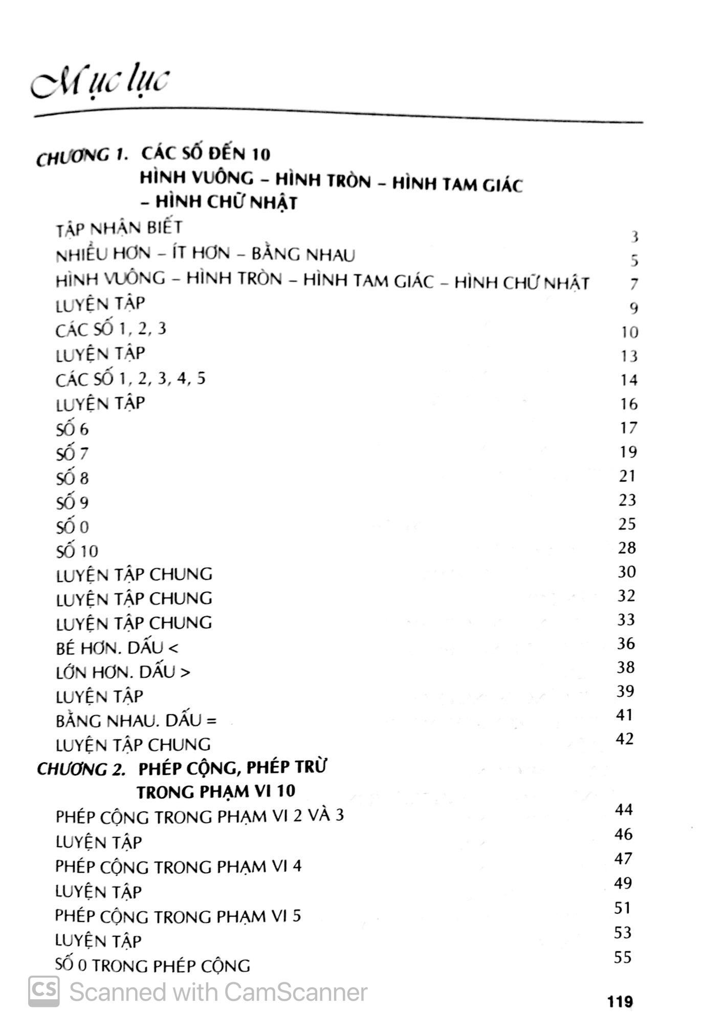 Chương 1. Các số đến 10, Hình vuông - Hình tròn - Hình tam giác - Hình chữ nhật.
