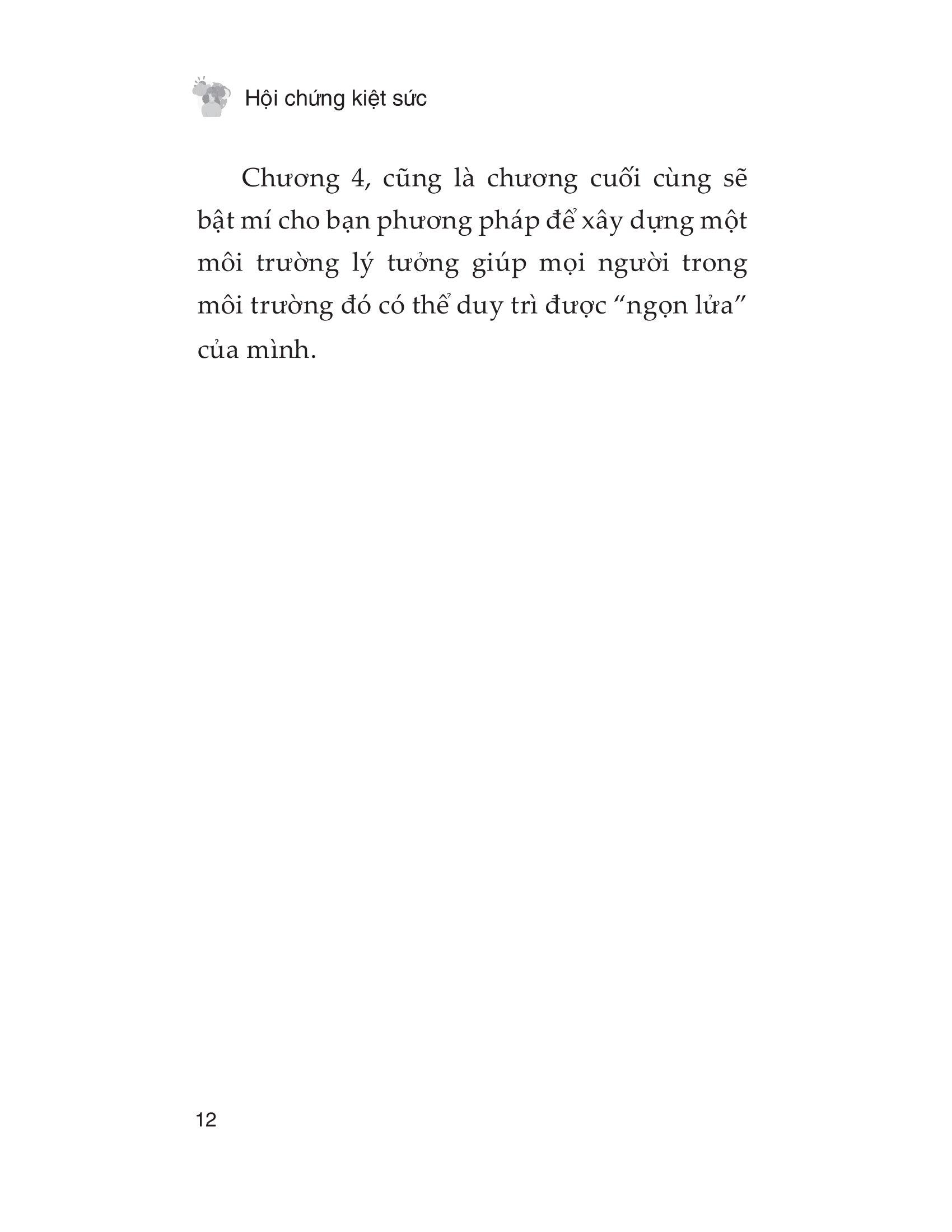 Ngay từ ngày mai, hãy thử áp dụng những gì bạn lĩnh hội được từ cuốn sách này vào thực tế cuộc sống để “giữ lửa” cho bản thân và “tiếp lửa” cho người khác bạn nhé!