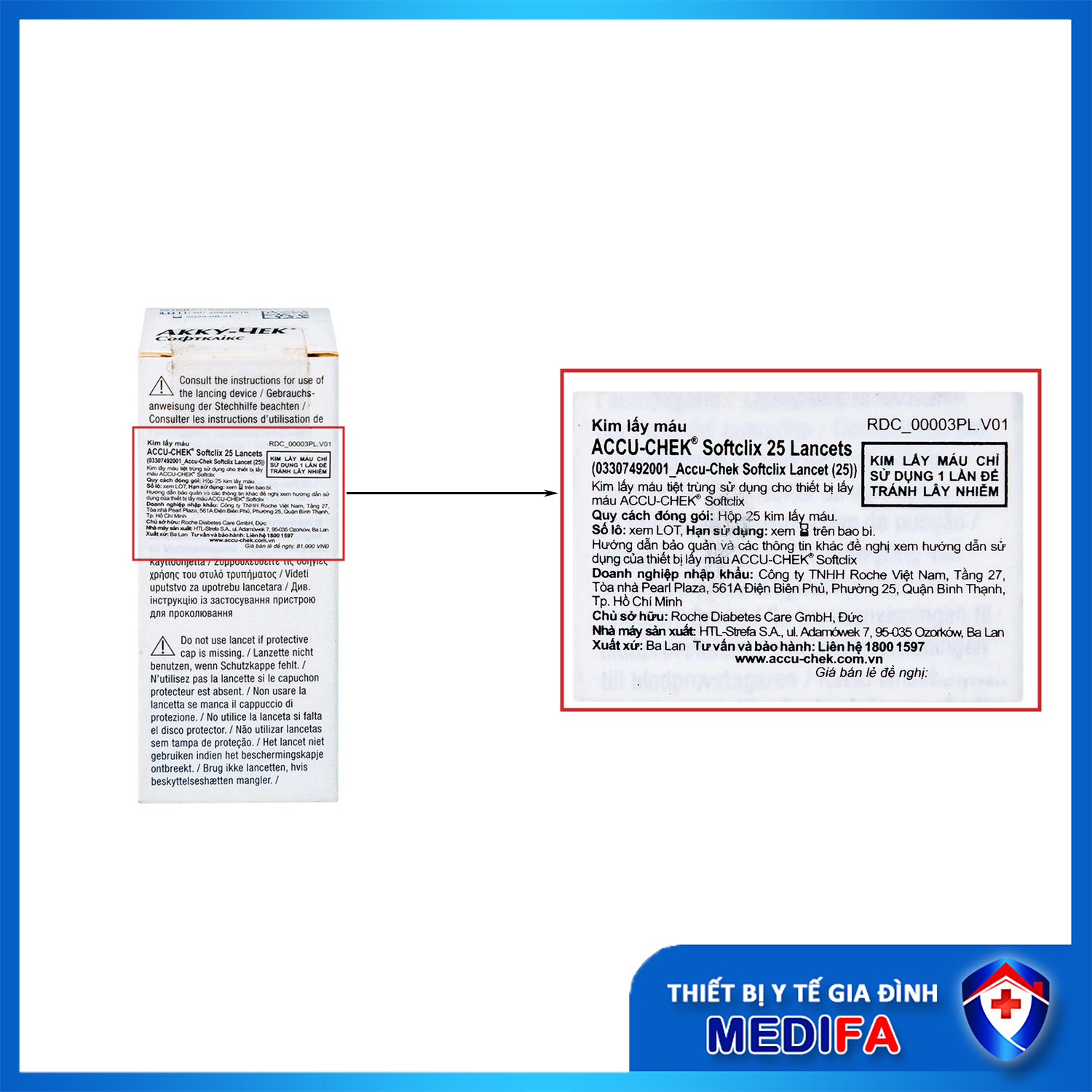 - Sản phẩm được thiết kế để sử dụng với bộ đo đường huyết Accu Chek Soft Clix.