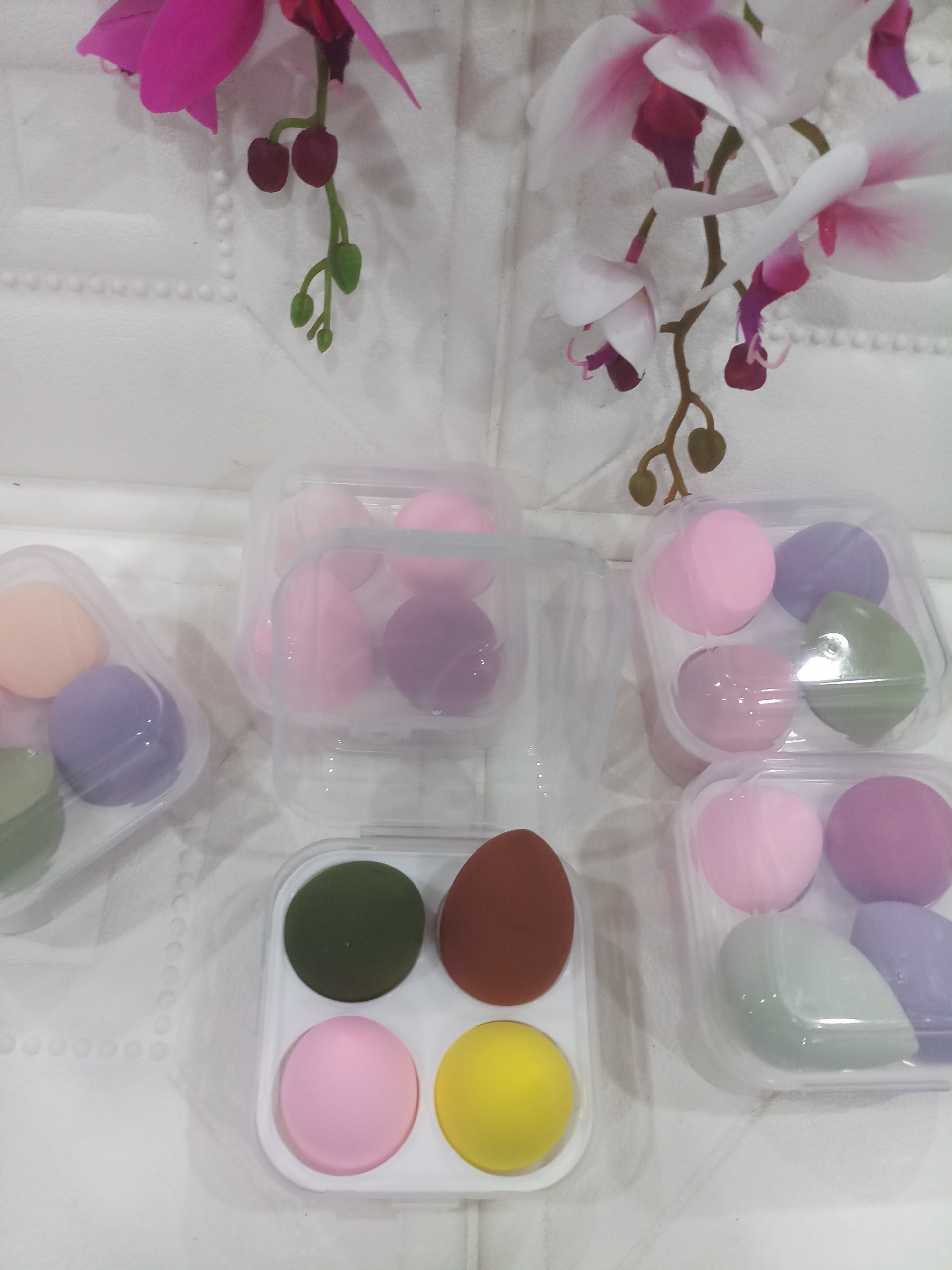 -Combo hộp bông tán phấn 4 món, mút tán phấn siêu mềm mại hình giọt nước , có độ đàn hồi cao , dẻo ,không bị biến dạng ,nhiều màu sắc cute xinh xắn đáng