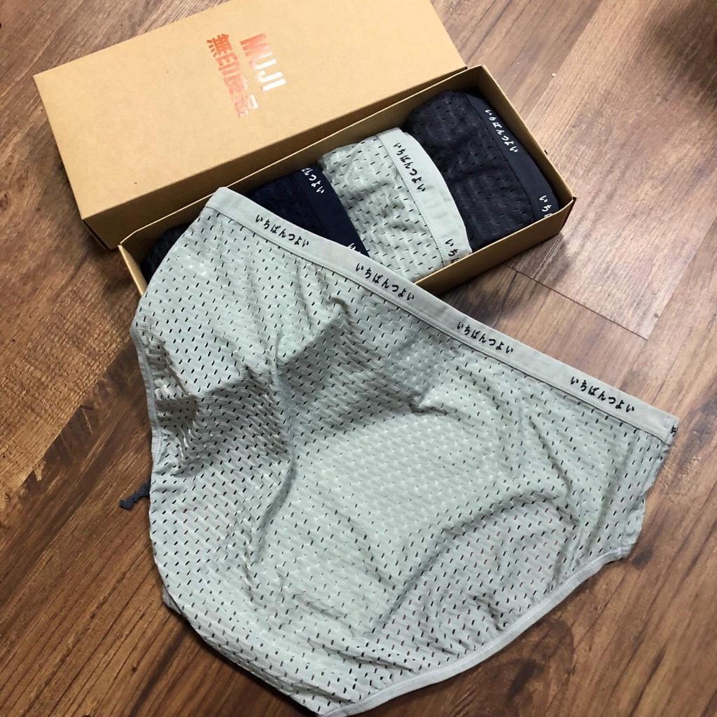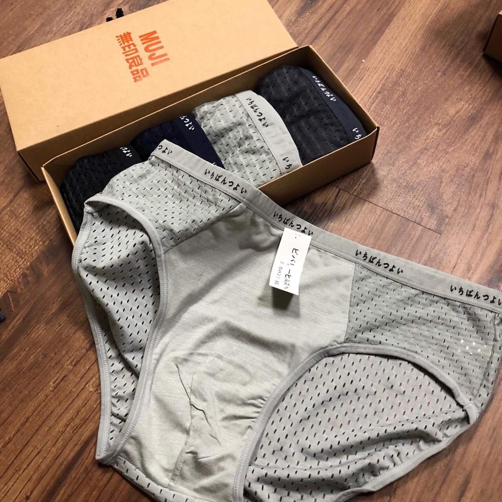 Hộp 5 quần lót nam tam giác Muji nhật lưới, Quần Sịp/quần xì Nam thông hơi thoáng khí kháng khuẩn Xuất Nhật Size: XL (47-58kg), XXL (58-68kg), XXXL (68-80kg) Chất liệu coton lụa cao cấp