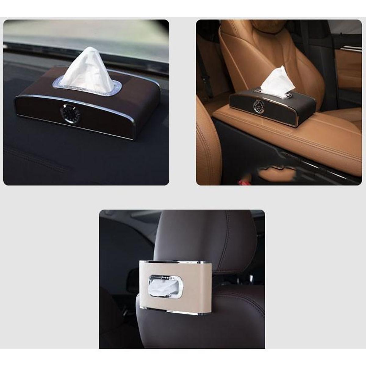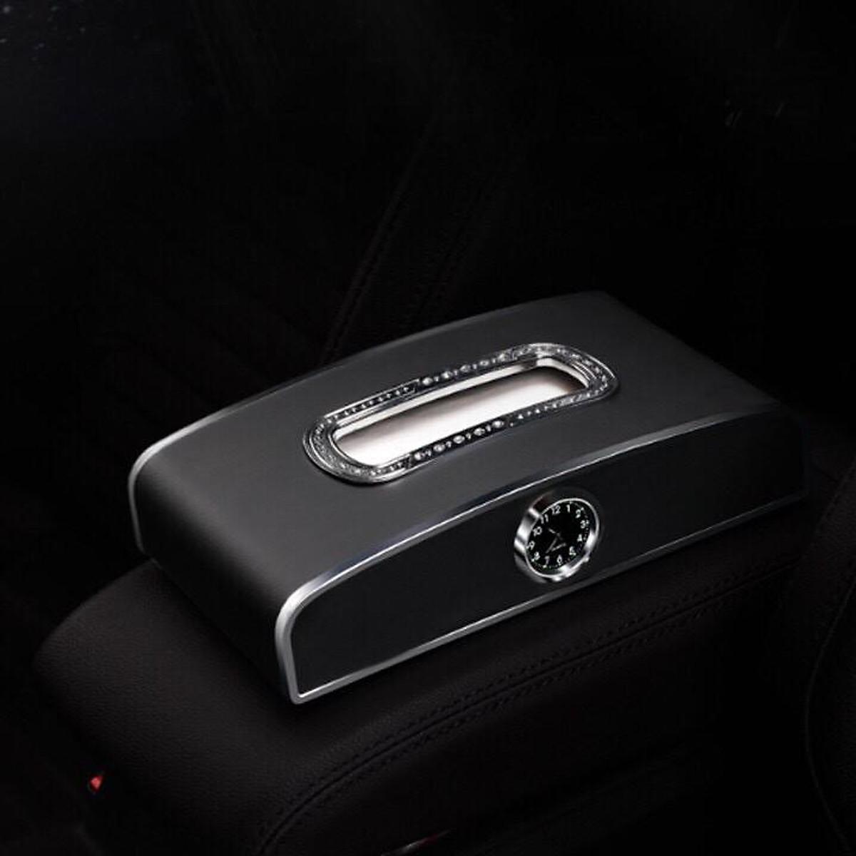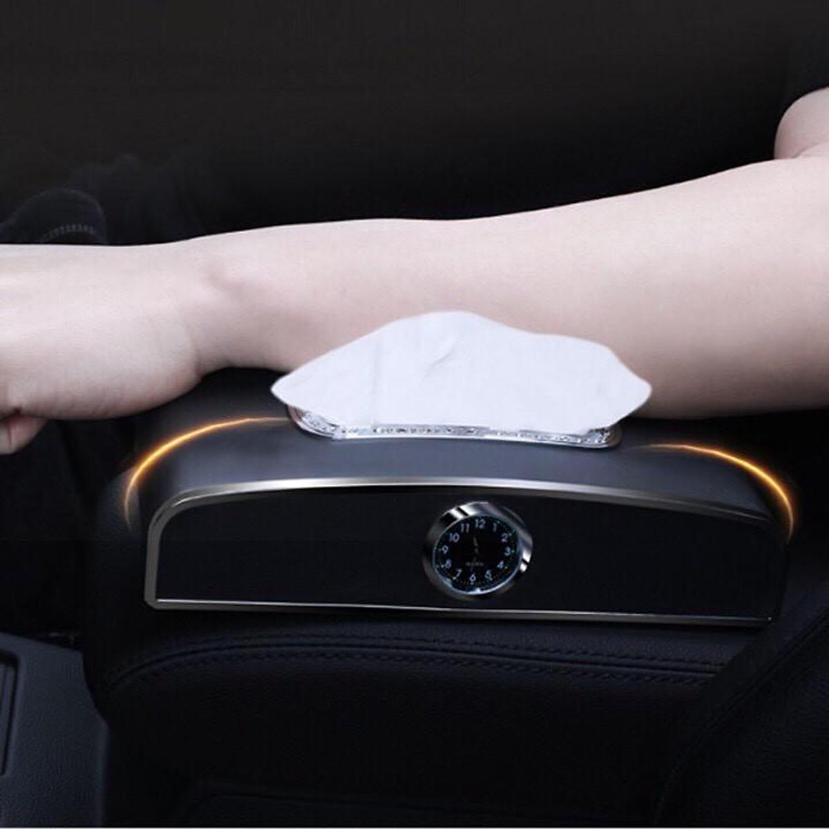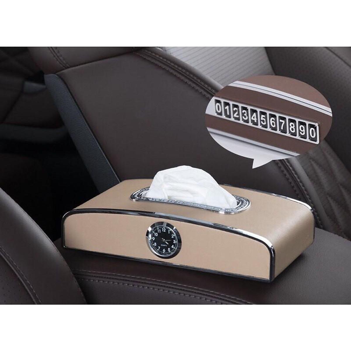 Hộp đựng khăn giấy trên ô tô tích hợp đồng hồ và bảng số điện thoại